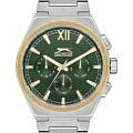 Часы Slazenger SL.09.2128.2.04 воплощают в себе элегантность и практичность, идеально подходящие для современных мужчин. Их зеленый циферблат, защищенный минеральным стекломМинеральное стеклоМинеральное стекло представляет собой искусственно выращенный минерал кварца. Такое стекло отличается особой устойчивостью к повреждениям и царапинам. Уступает по некоторым качествам сапфировому стеклу., заключен в корпус диаметром 46 мм, изготовленный из прочного суперметалла, а безельБезельВнешний ободок, закрепляющий стекло. В спортивных часах так называется поворотное кольцо с делениями на циферблате, выполняет роль таймера – замеряет отрезки времени на шкале. Неподвижный безель – элемент декора. Однонаправленно вращающийся безель на дайверских часах позволяет фиксировать моменты погружения и выныривания на поверхность. этих часов из суперметалла с залотистым IP-покрытиемIP-покрытиеМетод ионного напыления. Демонстрирует повышенную устойчивость к истиранию, окислению и химическим веществам. Под воздействием высокого давления и температуры около 1500°C молекулы металла надёжно соединяются с частицами корпуса часов.. Надежный кварцевый механизм обеспечивает точность, а водозащита 5 ATM делает их устойчивыми к воздействию воды. Стальной браслет из суперметалла с раскладной застёжкойРаскладная застёжкаТакой тип застёжки используется только на браслетах из металла. Она никогда не раскрывается полностью, происходит разделение на 2 и более частей. Раскладывающая застёжка снизит вероятность потери часов к минимуму. подчеркивает современный стиль и комфортно сидит на запястье. Часы оснащены 24-часовым указателем времени, а также функциями отображения даты и дня недели. Люминесцентное покрытиеЛюминесцентное покрытиеПозволяет считывать показания времени в темноте. Производители наносят на стрелки, часовые индексы, безель или поверхность циферблата светонакопительный состав, дающий холодное свечение. на стрелках и метках обеспечивает отличную видимость в темноте.