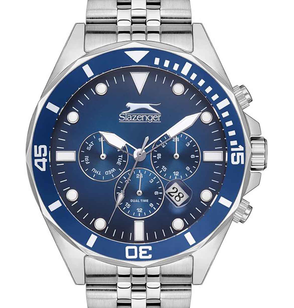 Часы Slazenger SL.09.2130.2.01 воплощают в себе элегантность и практичность, идеально подходящие для современных мужчин. Их синий циферблат, защищенный минеральным стекломМинеральное стеклоМинеральное стекло представляет собой искусственно выращенный минерал кварца. Такое стекло отличается особой устойчивостью к повреждениям и царапинам. Уступает по некоторым качествам сапфировому стеклу., заключен в серебристый корпус диаметром 46 мм, который изготовлен из прочного суперметалла. Часы оснащены двойным форматом времени (12 и 24 часа), вторым часовым поясом и удобным окошком даты. Надежный кварцевый механизм обеспечивает точность, а водозащита 5 ATM делает их устойчивыми к воздействию воды. Стальной браслет из суперметалла имеет раскладную застёжкуРаскладная застёжкаТакой тип застёжки используется только на браслетах из металла. Она никогда не раскрывается полностью, происходит разделение на 2 и более частей. Раскладывающая застёжка снизит вероятность потери часов к минимуму., что подчеркивает современный стиль и позволяет легко снимать часы. Часы оснащены 24-часовым указателем времени, а также функциями отображения даты и дня недели. Люминесцентное покрытиеЛюминесцентное покрытиеПозволяет считывать показания времени в темноте. Производители наносят на стрелки, часовые индексы, безель или поверхность циферблата светонакопительный состав, дающий холодное свечение. на стрелках и метках обеспечивает отличную видимость в темноте.