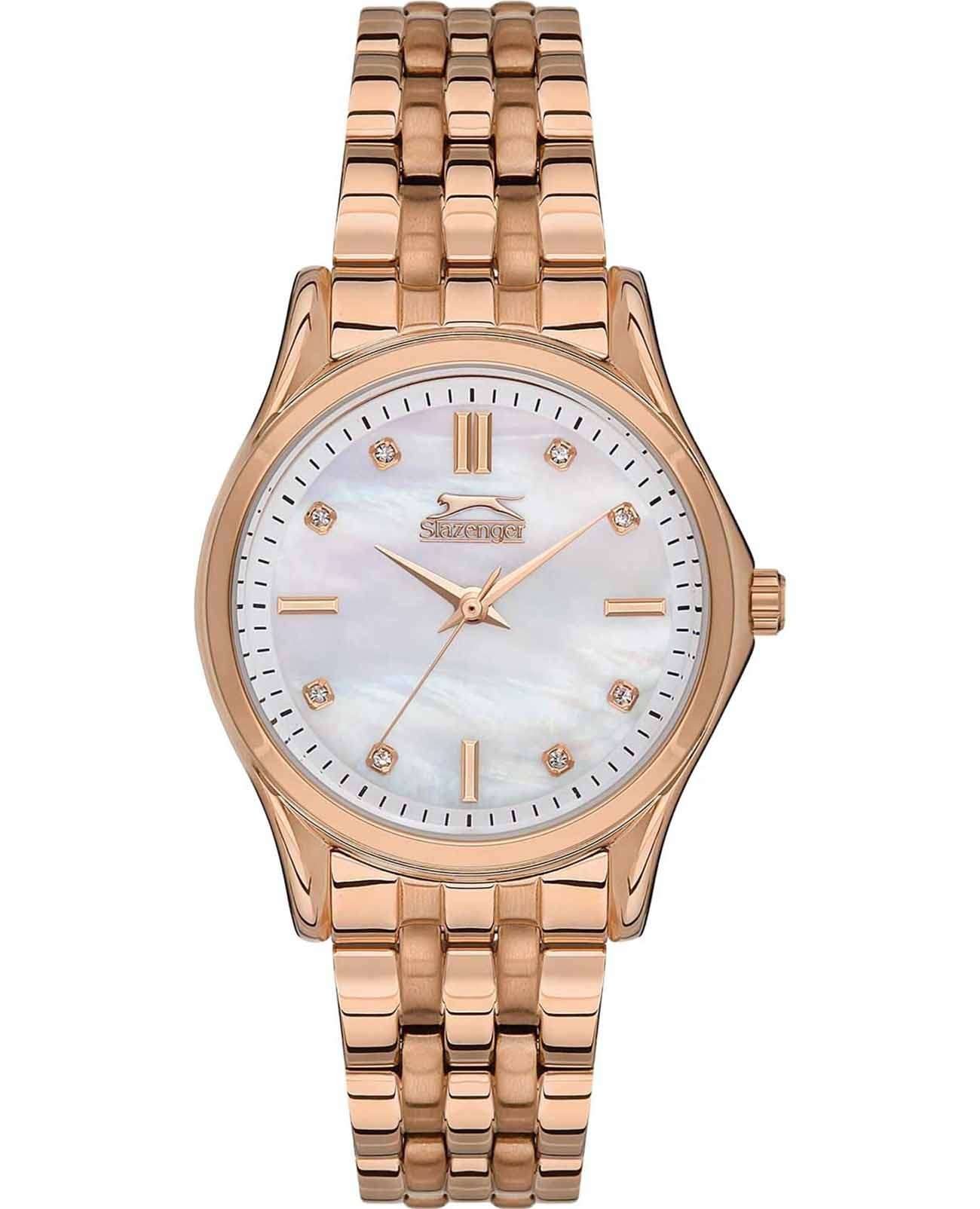 Эти стильные часы Slazenger SL.09.2154.3.04 станут отличным дополнением к вашему образу. Кварцевый механизм обеспечивает точное время, а корпус из суперметалла с розово-золотистым IP-покрытиемIP-покрытиеМетод ионного напыления. Демонстрирует повышенную устойчивость к истиранию, окислению и химическим веществам. Под воздействием высокого давления и температуры около 1500°C молекулы металла надёжно соединяются с частицами корпуса часов. придаёт аксессуару современный вид и дополнительную прочность. Перламутровый белый циферблат украшен изысканными фианитами, что добавляет часам элегантности и блеска. Металлический браслет, с розово-золотистым IP-покрытиемIP-покрытиеМетод ионного напыления. Демонстрирует повышенную устойчивость к истиранию, окислению и химическим веществам. Под воздействием высокого давления и температуры около 1500°C молекулы металла надёжно соединяются с частицами корпуса часов., отличается плавностью линий и удобной раскладной застёжкойРаскладная застёжкаТакой тип застёжки используется только на браслетах из металла. Она никогда не раскрывается полностью, происходит разделение на 2 и более частей. Раскладывающая застёжка снизит вероятность потери часов к минимуму.. Водозащита на уровне 30WR позволяет не беспокоиться о случайных брызгах в повседневной жизни. Минеральное стеклоМинеральное стеклоМинеральное стекло представляет собой искусственно выращенный минерал кварца. Такое стекло отличается особой устойчивостью к повреждениям и царапинам. Уступает по некоторым качествам сапфировому стеклу. защищает циферблат от царапин, а компактные габариты — диаметр 32 мм и толщина 9 мм — делают эти часы комфортными для ношения.
