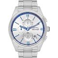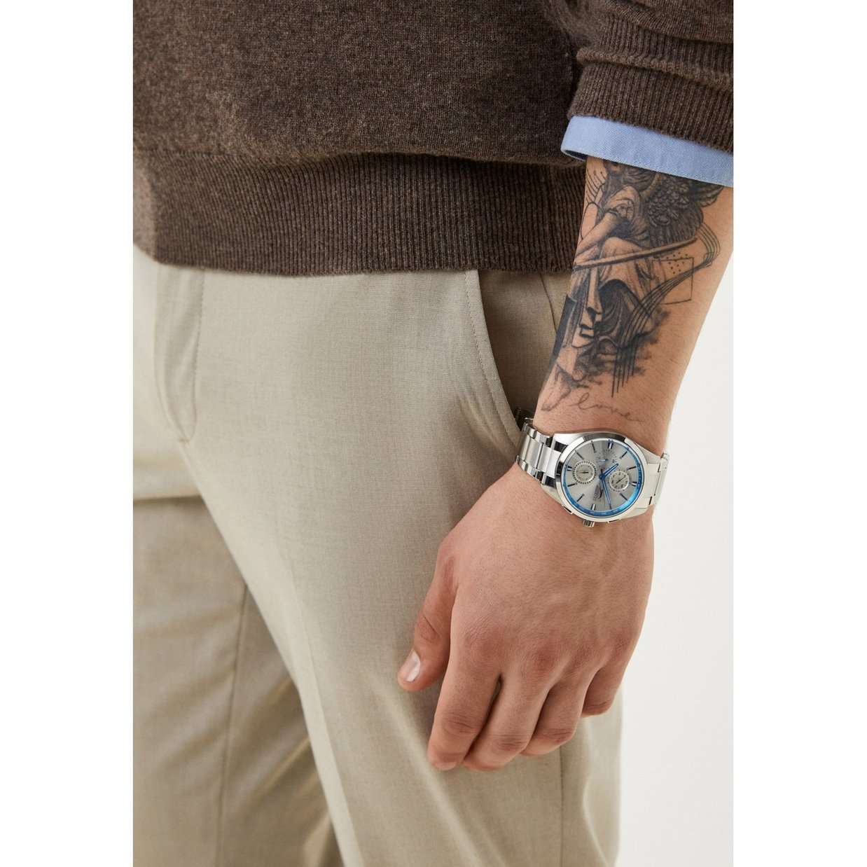 Часы Slazenger SL.09.2215.2.07 представляют собой стильные мужские наручные часы, которые сочетают в себе элегантный дизайн и функциональность. Изготовленные в Англии, эти кварцевые часы оснащены прочным металлическим корпусом и металлическим браслетом с раскладной застёжкойРаскладная застёжкаТакой тип застёжки используется только на браслетах из металла. Она никогда не раскрывается полностью, происходит разделение на 2 и более частей. Раскладывающая застёжка снизит вероятность потери часов к минимуму., который обеспечивает надежную фиксацию на запястье. Минеральное стеклоМинеральное стеклоМинеральное стекло представляет собой искусственно выращенный минерал кварца. Такое стекло отличается особой устойчивостью к повреждениям и царапинам. Уступает по некоторым качествам сапфировому стеклу. защищает серебристый циферблат от царапин, а водозащита WR 50 позволяет использовать их в условиях повышенной влажности. Диаметр корпуса составляет 43 мм, а толщина — 14 мм, что делает часы удобными для ежедневного ношения. Ширина ремешка — 22 мм, что обеспечивает комфорт и стильный вид на руке. Дополнительные функции включают отображение второго часового поясаВторой часовой поясФункция, позволяющая отображать время двух часовых поясов одновременно., дня недели и текущего времени в 24-часовом формате, а также наличие окошка даты для удобства пользователя. Стрелки снабжены люминесцентным покрытиемЛюминесцентное покрытиеПозволяет считывать показания времени в темноте. Производители наносят на стрелки, часовые индексы, безель или поверхность циферблата светонакопительный состав, дающий холодное свечение., что позволяет легко считывать время в темноте. Часы также оснащены тахиметромТахиметрРазмеченная шкала, располагается на ободке или безеле часов. Тахиметр позволяет рассчитать скорость на определённом участке пути, расстояние измеряется в километрах или милях., что добавляет им функциональности и может быть полезно для измерения скорости.
