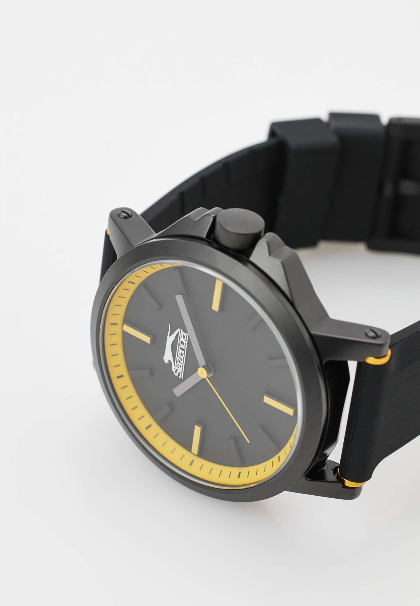 Стильные наручные часы Slazenger SL.09.2220.1.05 сочетают современный дизайн и практичность для повседневного использования. Крупный корпус диаметром 48 мм выполнен из прочного металла с IP-покрытиемIP-покрытиеМетод ионного напыления. Демонстрирует повышенную устойчивость к истиранию, окислению и химическим веществам. Под воздействием высокого давления и температуры около 1500°C молекулы металла надёжно соединяются с частицами корпуса часов., а минеральное стеклоМинеральное стеклоМинеральное стекло представляет собой искусственно выращенный минерал кварца. Такое стекло отличается особой устойчивостью к повреждениям и царапинам. Уступает по некоторым качествам сапфировому стеклу. обеспечивает дополнительную защиту черного циферблата от царапин. Модель оснащена надежным кварцевым механизмом и имеет водозащиту класса WR 50, что позволяет не снимать часы при мытье рук или во время дождя. Черный ремешок из мягкого и долговечного силикона удобно сидит на запястье и фиксируется классической застежкой. Часы весят всего 86 грамм, что делает их комфортными для ежедневной носки. Заводная головка оснащена защитой, что предотвращает случайное повреждение. Эта модель станет надежным и стильным аксессуаром для тех, кто ценит качество и функциональность.