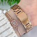 Элегантные наручные женские часы Slazenger SL.09.2222.3.04 созданы для тех, кто ценит стиль и изящество в каждом аксессуаре. Корпус диаметром 34 мм сделан из прочного металла с износостойким розово-золотистым IP-покрытиемIP-покрытиеМетод ионного напыления. Демонстрирует повышенную устойчивость к истиранию, окислению и химическим веществам. Под воздействием высокого давления и температуры около 1500°C молекулы металла надёжно соединяются с частицами корпуса часов., а безельБезельВнешний ободок, закрепляющий стекло. В спортивных часах так называется поворотное кольцо с делениями на циферблате, выполняет роль таймера – замеряет отрезки времени на шкале. Неподвижный безель – элемент декора. Однонаправленно вращающийся безель на дайверских часах позволяет фиксировать моменты погружения и выныривания на поверхность. усыпан фианитами, что придаёт аксессуару современный вид и долговечность. Циферблат украшен бело-синей градиентной отделкой и изящными фианитами, придающими модели особый блеск и шарм. Кварцевый механизм обеспечивает точность хода, а минеральное стеклоМинеральное стеклоМинеральное стекло представляет собой искусственно выращенный минерал кварца. Такое стекло отличается особой устойчивостью к повреждениям и царапинам. Уступает по некоторым качествам сапфировому стеклу. надежно защищает часы от случайных повреждений. Металлический браслет с розово-золотистым IP-покрытиемIP-покрытиеМетод ионного напыления. Демонстрирует повышенную устойчивость к истиранию, окислению и химическим веществам. Под воздействием высокого давления и температуры около 1500°C молекулы металла надёжно соединяются с частицами корпуса часов. снабжен удобной раскладной застёжкойРаскладная застёжкаТакой тип застёжки используется только на браслетах из металла. Она никогда не раскрывается полностью, происходит разделение на 2 и более частей. Раскладывающая застёжка снизит вероятность потери часов к минимуму., что гарантирует комфортное ношение на запястье. Стрелки и метки снабжены люминесцентным покрытиемЛюминесцентное покрытиеПозволяет считывать показания времени в темноте. Производители наносят на стрелки, часовые индексы, безель или поверхность циферблата светонакопительный состав, дающий холодное свечение., что позволяет легко считывать время в темноте. Водозащита 3 ATM позволяет не беспокоиться о случайных брызгах и попадании влаги. Толщина корпуса составляет всего 10 мм, благодаря чему часы изящно смотрятся на запястье и не доставляют дискомфорта при носке. Эта модель станет отличным выбором для повседневных образов и особых случаев, подчеркивая индивидуальность и безупречный вкус своей обладательницы.
