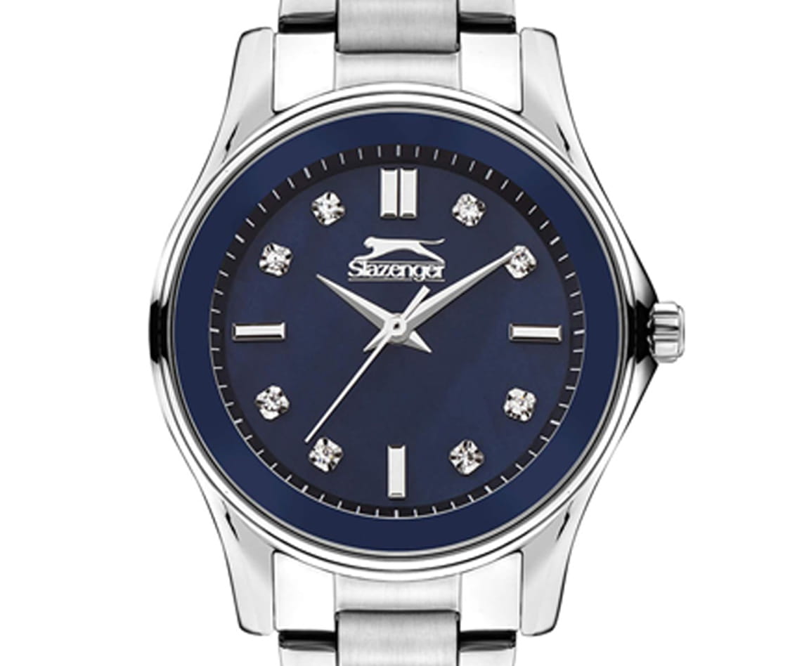 Женские наручные часы Slazenger SL.09.2235.3.07 сочетают в себе классический дизайн и надежность современных технологий. Модель обладает круглым корпусом диаметром 32 мм, изготовленным из суперметалла, что обеспечивает высокую устойчивость к внешним воздействиям. Индексы украшены фианитами. Браслет выполнен из суперметалла с раскладной застежкойРаскладной замокДанный вариант застежки используется только на часах с металлическим браслетом. Отличительная особенность такого крепления в том, что длина браслета становится универсальной и вы можете самостоятельно отрегулировать нужный вам размер – застежка просто двигается по браслету часов., гарантирующей комфортное ношение и безопасность. Циферблат синего цвета декорирован серебристыми стрелками и индексами, которые обеспечивают читаемость времени даже в условиях недостаточной освещенности. Для защиты используется минеральное стеклоМинеральное стеклоМинеральное стекло представляет собой искусственно выращенный минерал кварца. Такое стекло отличается особой устойчивостью к повреждениям и царапинам. Уступает по некоторым качествам сапфировому стеклу., обеспечивающее прочную защиту от царапин. Часы работают на кварцевом механизме, что гарантирует точное время без необходимости подзаводки. Водонепроницаемость часов достигает 3 атмосфер, что позволяет использовать их при мытье рук или хождении под мелким дождем, однако не рекомендуется для плавания или других водных видов спорта. Вес модели составляет 72 грамма.