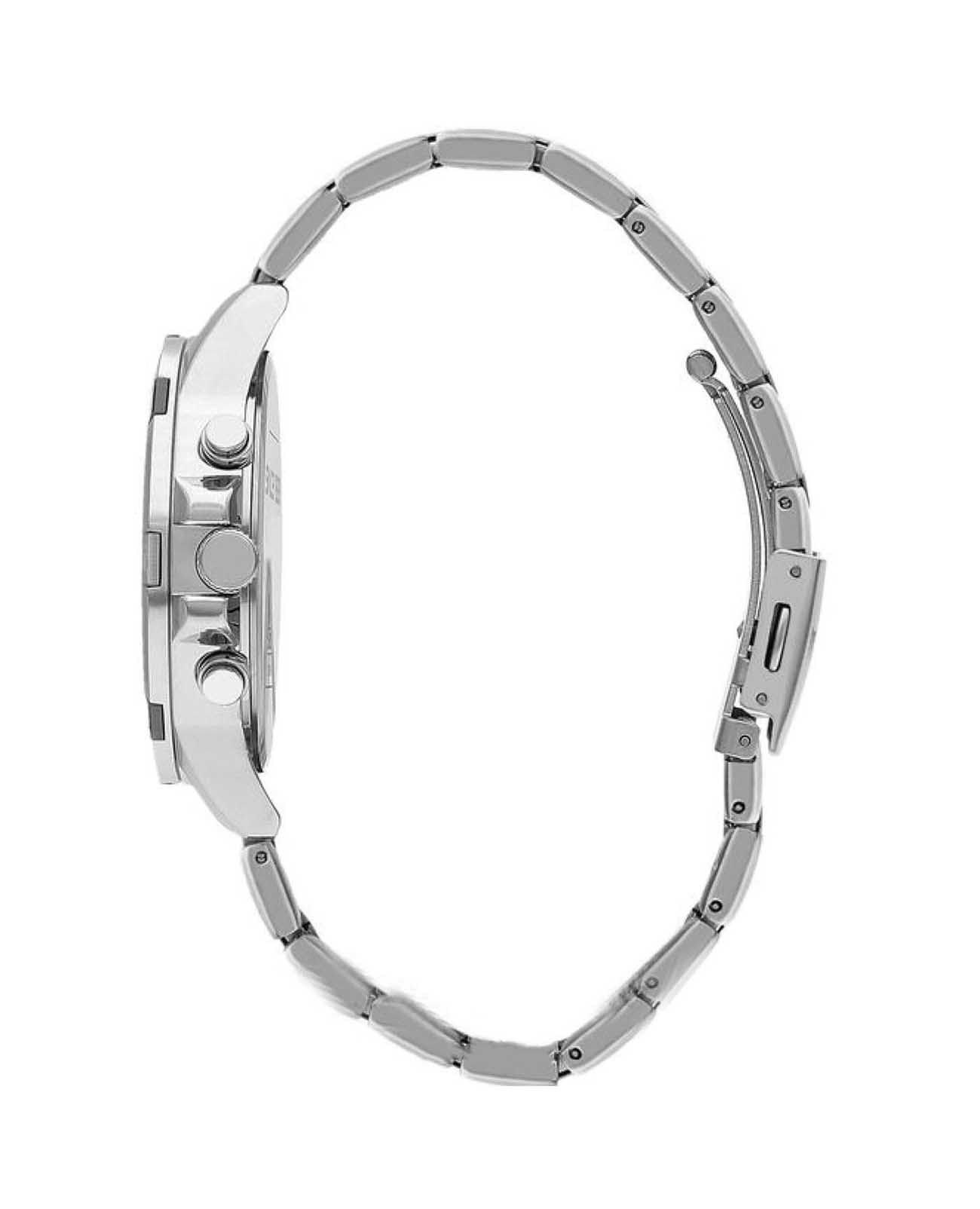 Часы Slazenger SL.09.2249.2.02 — это стильная и практичная модель, выполненная в элегантном серебристом цвете. Корпус и браслет изготовлены из металла, что обеспечивает прочность и долговечность. На безельБезельВнешний ободок, закрепляющий стекло. В спортивных часах так называется поворотное кольцо с делениями на циферблате, выполняет роль таймера – замеряет отрезки времени на шкале. Неподвижный безель – элемент декора. Однонаправленно вращающийся безель на дайверских часах позволяет фиксировать моменты погружения и выныривания на поверхность. частично нанесено синее IP-покрытиеIP-покрытиеМетод ионного напыления. Демонстрирует повышенную устойчивость к истиранию, окислению и химическим веществам. Под воздействием высокого давления и температуры около 1500°C молекулы металла надёжно соединяются с частицами корпуса часов.. Минеральное стеклоМинеральное стеклоМинеральное стекло представляет собой искусственно выращенный минерал кварца. Такое стекло отличается особой устойчивостью к повреждениям и царапинам. Уступает по некоторым качествам сапфировому стеклу. надежно защищает сине-серебристый циферблат от царапин и повреждений. Диаметр корпуса составляет 45 мм, а толщина — 12 мм, благодаря чему часы смотрятся солидно и современно. Модель оснащена кварцевым механизмом, отличающимся точностью и надежностью. На циферблате представлены дополнительные малые циферблаты для отображения второго часового поясаВторой часовой поясФункция, позволяющая отображать время двух часовых поясов одновременно., дня недели и времени в 24-часовом формате, а также имеется отдельное окошко даты. Для удобства использования в темное время суток предусмотрено люминесцентное покрытиеЛюминесцентное покрытиеПозволяет считывать показания времени в темноте. Производители наносят на стрелки, часовые индексы, безель или поверхность циферблата светонакопительный состав, дающий холодное свечение. стрелок и меток. Удобный металлический браслет шириной 22 мм снабжен раскладной застёжкойРаскладная застёжкаТакой тип застёжки используется только на браслетах из металла. Она никогда не раскрывается полностью, происходит разделение на 2 и более частей. Раскладывающая застёжка снизит вероятность потери часов к минимуму., обеспечивающей надежную фиксацию на запястье. Заводная головка оснащена защитой. Водозащита уровня WR 50 позволяет не снимать часы при мытье рук или попадании под дождь. Вес модели составляет 151 грамм.