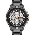 Часы Slazenger SL.09.2249.2.03 — это стильная и практичная модель, выполненная в элегантном графитовом цвете. Корпус и браслет изготовлены из металла с IP-покрытиемIP-покрытиеМетод ионного напыления. Демонстрирует повышенную устойчивость к истиранию, окислению и химическим веществам. Под воздействием высокого давления и температуры около 1500°C молекулы металла надёжно соединяются с частицами корпуса часов., что обеспечивает прочность и долговечность. На графитовый безельБезельВнешний ободок, закрепляющий стекло. В спортивных часах так называется поворотное кольцо с делениями на циферблате, выполняет роль таймера – замеряет отрезки времени на шкале. Неподвижный безель – элемент декора. Однонаправленно вращающийся безель на дайверских часах позволяет фиксировать моменты погружения и выныривания на поверхность. частично нанесено черное IP-покрытиеIP-покрытиеМетод ионного напыления. Демонстрирует повышенную устойчивость к истиранию, окислению и химическим веществам. Под воздействием высокого давления и температуры около 1500°C молекулы металла надёжно соединяются с частицами корпуса часов.. Минеральное стеклоМинеральное стеклоМинеральное стекло представляет собой искусственно выращенный минерал кварца. Такое стекло отличается особой устойчивостью к повреждениям и царапинам. Уступает по некоторым качествам сапфировому стеклу. надежно защищает черно-серебристый циферблат от царапин и повреждений. Диаметр корпуса составляет 45 мм, а толщина — 12 мм, благодаря чему часы смотрятся солидно и современно. Модель оснащена кварцевым механизмом, отличающимся точностью и надежностью. На циферблате представлены дополнительные малые циферблаты для отображения второго часового поясаВторой часовой поясФункция, позволяющая отображать время двух часовых поясов одновременно., дня недели и времени в 24-часовом формате, а также имеется отдельное окошко даты. Для удобства использования в темное время суток предусмотрено люминесцентное покрытиеЛюминесцентное покрытиеПозволяет считывать показания времени в темноте. Производители наносят на стрелки, часовые индексы, безель или поверхность циферблата светонакопительный состав, дающий холодное свечение. стрелок и меток. Удобный металлический браслет шириной 22 мм снабжен раскладной застёжкойРаскладная застёжкаТакой тип застёжки используется только на браслетах из металла. Она никогда не раскрывается полностью, происходит разделение на 2 и более частей. Раскладывающая застёжка снизит вероятность потери часов к минимуму., обеспечивающей надежную фиксацию на запястье. Заводная головка оснащена защитой. Водозащита уровня WR 50 позволяет не снимать часы при мытье рук или попадании под дождь. Вес модели составляет 151 грамм.