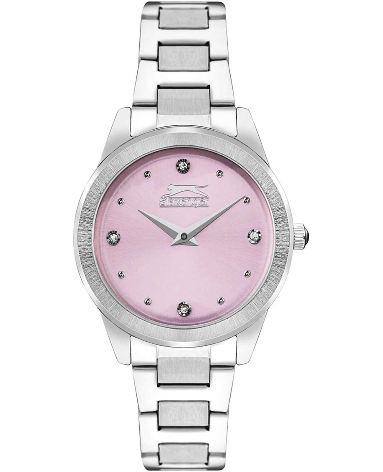 Часы Slazenger SL.09.2253.3.04 — это стильная и элегантная модель, созданная для тех, кто ценит утонченность и надежность. Корпус выполнен из прочного металла, а изящный серебристый браслет оснащён удобной раскладной застёжкойРаскладная застёжкаТакой тип застёжки используется только на браслетах из металла. Она никогда не раскрывается полностью, происходит разделение на 2 и более частей. Раскладывающая застёжка снизит вероятность потери часов к минимуму.. Минеральное стеклоМинеральное стеклоМинеральное стекло представляет собой искусственно выращенный минерал кварца. Такое стекло отличается особой устойчивостью к повреждениям и царапинам. Уступает по некоторым качествам сапфировому стеклу. защищает розовый циферблат, украшенный сияющими кристаллами, придающими аксессуару особый шарм. Кварцевый механизм обеспечивает точность хода, а водозащита класса WR 30 позволяет не беспокоиться о случайных брызгах. Диаметр корпуса составляет 33 мм, ширина браслета — 16 мм, толщина корпуса — 8 мм, что делает эти часы аккуратными и комфортными для повседневной носки. Модель весит 70 грамм. Часы прекрасно дополнят как деловой, так и повседневный образ, подчеркивая индивидуальность своей обладательницы.