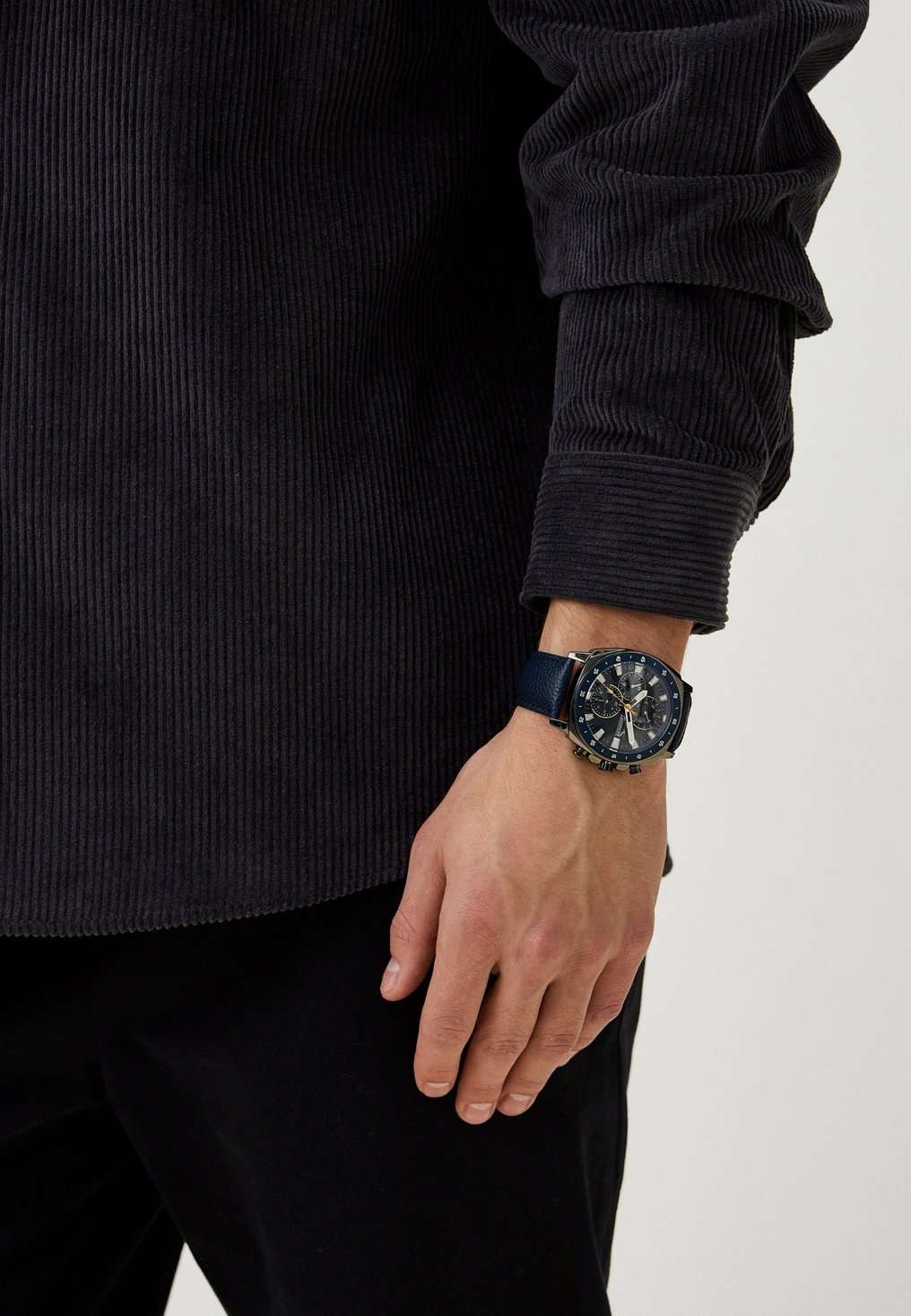 Slazenger SL.09.2293.2.03 — это стильные наручные часы, выполненные в современном дизайне и отлично подходящие для повседневного использования. Корпус диаметром 45 мм изготовлен из прочного металла с черным IP-покрытиемIP-покрытиеМетод ионного напыления. Демонстрирует повышенную устойчивость к истиранию, окислению и химическим веществам. Под воздействием высокого давления и температуры около 1500°C молекулы металла надёжно соединяются с частицами корпуса часов. и дополнен минеральным стекломМинеральное стеклоМинеральное стекло представляет собой искусственно выращенный минерал кварца. Такое стекло отличается особой устойчивостью к повреждениям и царапинам. Уступает по некоторым качествам сапфировому стеклу., которое защищает синий циферблат. Синий кожаный ремешок шириной 24 мм оснащён надежной классической застежкой, которая обеспечивает комфортную посадку на руке. Кварцевый механизм гарантирует точный ход, а водозащита уровня WR 50 позволяет не снимать часы во время мытья рук или под дождём. Модель оснащена люминесцентным покрытиемЛюминесцентное покрытиеПозволяет считывать показания времени в темноте. Производители наносят на стрелки, часовые индексы, безель или поверхность циферблата светонакопительный состав, дающий холодное свечение. стрелок и меток, что облегчает считывание времени в темноте. Дополнительные малые циферблаты отображают дату, день недели и текущее время в 24-часовом формате. Часы также оснащены заводной головкой с защитой и безелемБезельВнешний ободок, закрепляющий стекло. В спортивных часах так называется поворотное кольцо с делениями на циферблате, выполняет роль таймера – замеряет отрезки времени на шкале. Неподвижный безель – элемент декора. Однонаправленно вращающийся безель на дайверских часах позволяет фиксировать моменты погружения и выныривания на поверхность. с синим IP-покрытиемIP-покрытиеМетод ионного напыления. Демонстрирует повышенную устойчивость к истиранию, окислению и химическим веществам. Под воздействием высокого давления и температуры около 1500°C молекулы металла надёжно соединяются с частицами корпуса часов. и секундной разметкой. Вес изделия составляет 80 грамм.