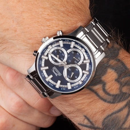 Мужские наручные часы Slazenger SL.09.2294.2.05 сочетают стильный современный дизайн и высокую функциональность. Корпус из прочного металла диаметром 44 мм и толщиной 13 мм защищён минеральным стекломМинеральное стеклоМинеральное стекло представляет собой искусственно выращенный минерал кварца. Такое стекло отличается особой устойчивостью к повреждениям и царапинам. Уступает по некоторым качествам сапфировому стеклу., устойчивым к царапинам. Серебристый металлический браслет шириной 22 мм оснащён надёжной раскладной застёжкойРаскладная застёжкаТакой тип застёжки используется только на браслетах из металла. Она никогда не раскрывается полностью, происходит разделение на 2 и более частей. Раскладывающая застёжка снизит вероятность потери часов к минимуму., обеспечивающей комфортное ношение. Кварцевый механизм гарантирует точность хода, а водозащита уровня WR 50 позволяет не снимать часы при мытье рук или во время дождя. Модель оснащена люминесцентным покрытиемЛюминесцентное покрытиеПозволяет считывать показания времени в темноте. Производители наносят на стрелки, часовые индексы, безель или поверхность циферблата светонакопительный состав, дающий холодное свечение. стрелок и меток, что облегчает считывание времени в темноте. На малых циферблатах отображаются дата, день недели и текущее время в 24-часовом формате, что делает модель особенно удобной для повседневного использования. Циферблат часов изысканного синего цвета. Заводная головка с защитой и завинчивающаяся задняя крышка обеспечивают дополнительную надежность конструкции. Вес часов составляет 123 грамма.