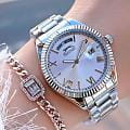 Женские элегантные наручные часы Slazenger SL.09.2338.4.01 сочетают в себе современный стиль и функциональность. Стильный корпус выполнен из суперметалла, придающий модели дополнительную прочность и элегантный внешний вид. Изысканный циферблат защищён минеральным стекломМинеральное стеклоМинеральное стекло представляет собой искусственно выращенный минерал кварца. Такое стекло отличается особой устойчивостью к повреждениям и царапинам. Уступает по некоторым качествам сапфировому стеклу., устойчивым к царапинам и повреждениям. Водонепроницаемость 3 АТМ позволяет использовать часы в повседневных условиях — при мытье рук или под лёгким дождём. Браслет из суперметалла и с раскладной застёжкойРаскладная застёжкаТакой тип застёжки используется только на браслетах из металла. Она никогда не раскрывается полностью, происходит разделение на 2 и более частей. Раскладывающая застёжка снизит вероятность потери часов к минимуму., обеспечивающий надёжную фиксацию и комфорт при ношении. Окошко даты находится в положении 3 часа. Cтрелки покрыты люминесцентным покрытиемЛюминесцентное покрытиеПозволяет считывать показания времени в темноте. Производители наносят на стрелки, часовые индексы, безель или поверхность циферблата светонакопительный состав, дающий холодное свечение. для читаемости в условиях недостаточного освещения. Эта модель идеально подходит для женщин, ценящих стиль, функциональность и надёжность в одном аксессуаре.