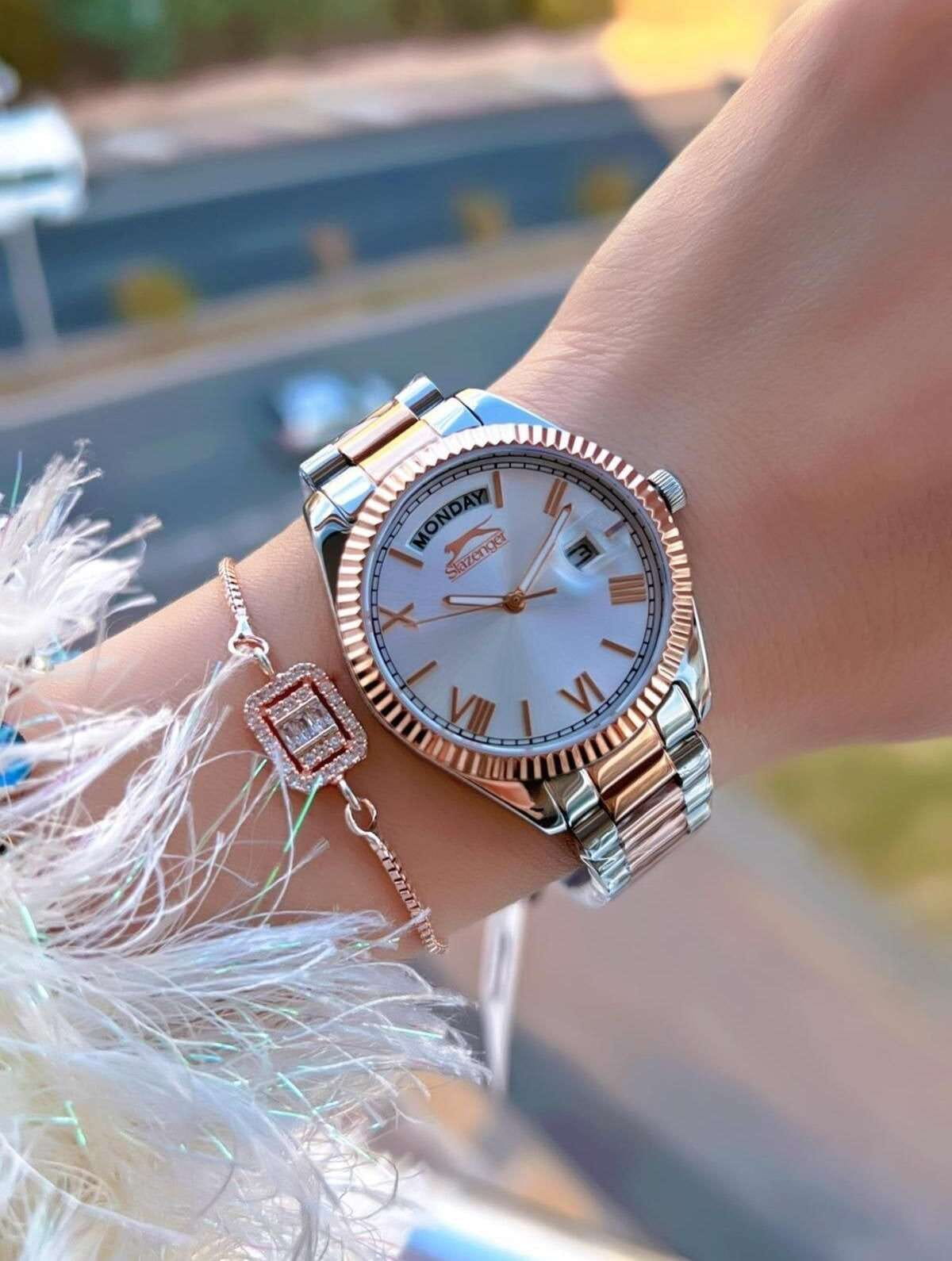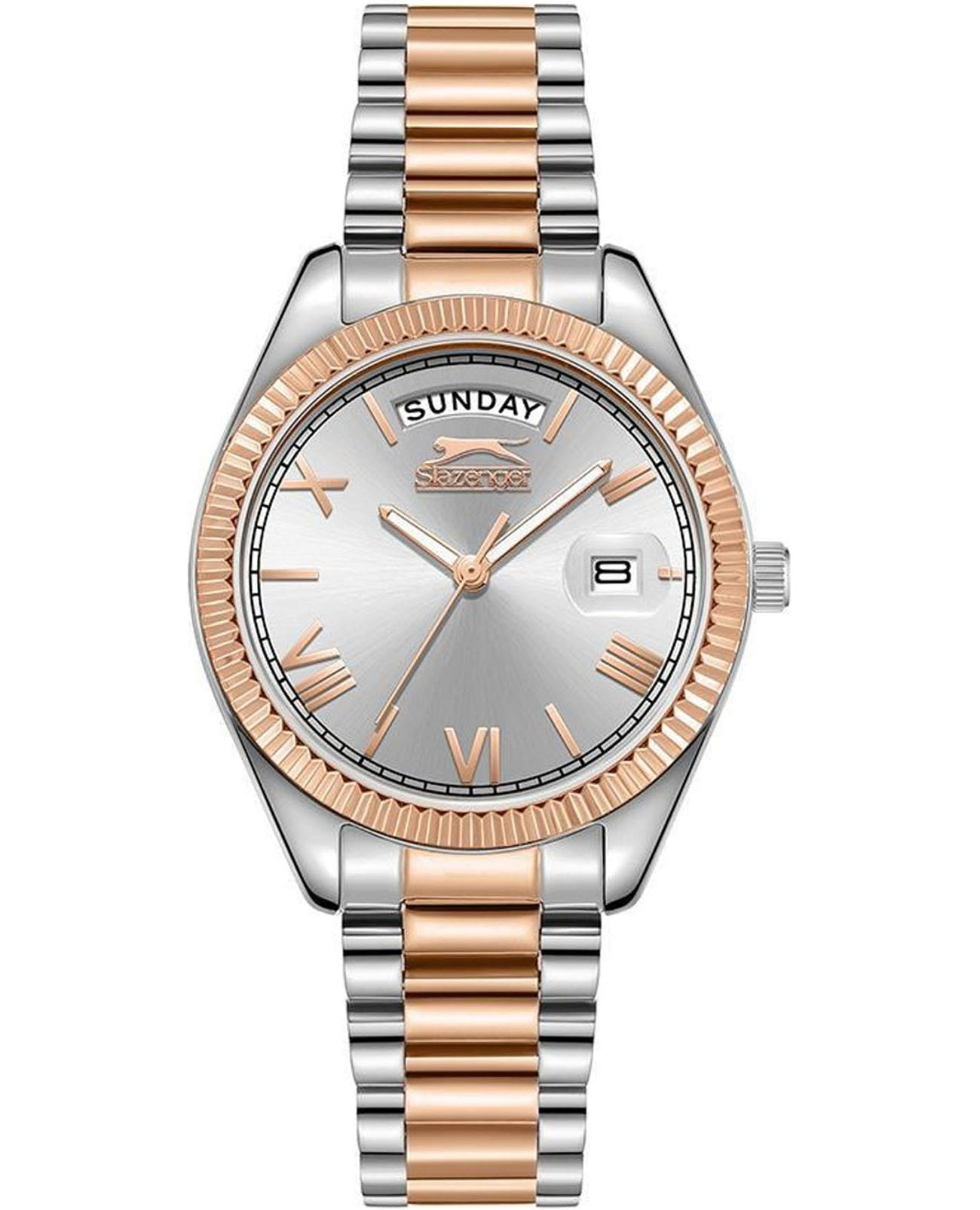 Женские элегантные наручные часы Slazenger SL.09.2338.4.02 сочетают в себе современный стиль и функциональность. Стильный корпус выполнен из суперметалла, а неповоротный безельБезельВнешний ободок, закрепляющий стекло. В спортивных часах так называется поворотное кольцо с делениями на циферблате, выполняет роль таймера – замеряет отрезки времени на шкале. Неподвижный безель – элемент декора. Однонаправленно вращающийся безель на дайверских часах позволяет фиксировать моменты погружения и выныривания на поверхность. с IP-покрытиемIP-покрытиеМетод ионного напыления. Демонстрирует повышенную устойчивость к истиранию, окислению и химическим веществам. Под воздействием высокого давления и температуры около 1500°C молекулы металла надёжно соединяются с частицами корпуса часов., придающий модели дополнительную прочность и элегантный внешний вид. Изысканный циферблат защищён минеральным стекломМинеральное стеклоМинеральное стекло представляет собой искусственно выращенный минерал кварца. Такое стекло отличается особой устойчивостью к повреждениям и царапинам. Уступает по некоторым качествам сапфировому стеклу., устойчивым к царапинам и повреждениям. Водонепроницаемость 3 АТМ позволяет использовать часы в повседневных условиях — при мытье рук или под лёгким дождём. Браслет из суперметалла с IP-покрытиемIP-покрытиеМетод ионного напыления. Демонстрирует повышенную устойчивость к истиранию, окислению и химическим веществам. Под воздействием высокого давления и температуры около 1500°C молекулы металла надёжно соединяются с частицами корпуса часов. и с раскладной застёжкойРаскладная застёжкаТакой тип застёжки используется только на браслетах из металла. Она никогда не раскрывается полностью, происходит разделение на 2 и более частей. Раскладывающая застёжка снизит вероятность потери часов к минимуму., обеспечивающий надёжную фиксацию и комфорт при ношении. Окошко даты находится в положении 3 часа. Cтрелки покрыты люминесцентным покрытиемЛюминесцентное покрытиеПозволяет считывать показания времени в темноте. Производители наносят на стрелки, часовые индексы, безель или поверхность циферблата светонакопительный состав, дающий холодное свечение. для читаемости в условиях недостаточного освещения. Эта модель идеально подходит для женщин, ценящих стиль, функциональность и надёжность в одном аксессуаре.