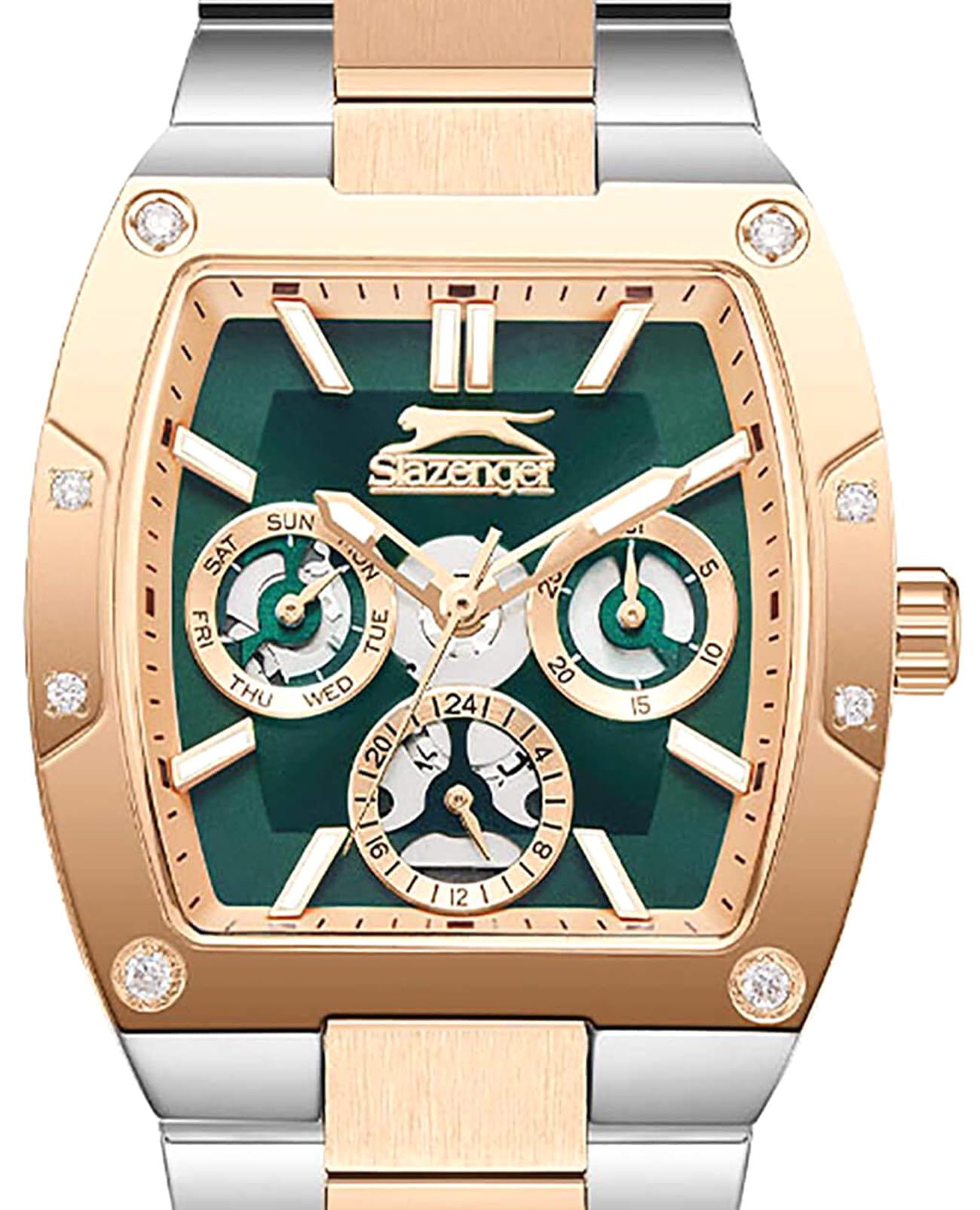 Женские кварцевые часы Slazenger SL.09.2357.4.06 – это сочетание элегантности, современного стиля и надёжности. Изящный корпус из суперметалла с IP-покрытиемIP-покрытиеМетод ионного напыления. Демонстрирует повышенную устойчивость к истиранию, окислению и химическим веществам. Под воздействием высокого давления и температуры около 1500°C молекулы металла надёжно соединяются с частицами корпуса часов. золотистого цвета, размером 32 мм х 33 мм и толщиной 10 мм, подчёркивает утончённость модели и делает их идеальным аксессуаром для любой ситуации – будь то деловая встреча, романтический вечер или повседневные выходы. Циферблат надёжно защищён минеральным стекломМинеральное стеклоМинеральное стекло представляет собой искусственно выращенный минерал кварца. Такое стекло отличается особой устойчивостью к повреждениям и царапинам. Уступает по некоторым качествам сапфировому стеклу., которое устойчиво к механическим повреждениям и сохраняет кристальную прозрачность. Браслет из суперметалла с частичным IP-покрытиемIP-покрытиеМетод ионного напыления. Демонстрирует повышенную устойчивость к истиранию, окислению и химическим веществам. Под воздействием высокого давления и температуры около 1500°C молекулы металла надёжно соединяются с частицами корпуса часов. удобно облегает запястье и фиксируется с помощью раскладной застёжкиРаскладная застёжкаТакой тип застёжки используется только на браслетах из металла. Она никогда не раскрывается полностью, происходит разделение на 2 и более частей. Раскладывающая застёжка снизит вероятность потери часов к минимуму., обеспечивая надёжность и комфорт в повседневном ношении. Утончённый стиль, внимание к деталям и практичность делают эту модель идеальным выбором для современных женщин, ценящих эстетику и функциональность. Стрелки и метки покрыты люминесцентным покрытиемЛюминесцентное покрытиеПозволяет считывать показания времени в темноте. Производители наносят на стрелки, часовые индексы, безель или поверхность циферблата светонакопительный состав, дающий холодное свечение., обеспечивающим отличную читаемость в темноте. Вынесенный циферблат с 24-х часовым указателем времени. Водозащита до 30 метров позволит защитить корпус от случайных брызг или капель дождя.