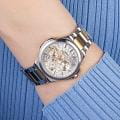 Женские кварцевые часы Slazenger SL.09.2365.4.07 – это сочетание элегантности, современного стиля и надёжности. Изящный корпус из суперметалла серебристого цвета, диаметром 33 мм и толщиной 10 мм, подчёркивает утончённость модели и делает их идеальным аксессуаром для любой ситуации – будь то деловая встреча, романтический вечер или повседневные выходы. Циферблат надёжно защищён минеральным стекломМинеральное стеклоМинеральное стекло представляет собой искусственно выращенный минерал кварца. Такое стекло отличается особой устойчивостью к повреждениям и царапинам. Уступает по некоторым качествам сапфировому стеклу., которое устойчиво к механическим повреждениям и сохраняет кристальную прозрачность. Браслет из суперметалла с частичным IP-покрытиемIP-покрытиеМетод ионного напыления. Демонстрирует повышенную устойчивость к истиранию, окислению и химическим веществам. Под воздействием высокого давления и температуры около 1500°C молекулы металла надёжно соединяются с частицами корпуса часов. золотистого цвета удобно облегает запястье и фиксируется с помощью раскладной застёжкиРаскладная застёжкаТакой тип застёжки используется только на браслетах из металла. Она никогда не раскрывается полностью, происходит разделение на 2 и более частей. Раскладывающая застёжка снизит вероятность потери часов к минимуму., обеспечивая надёжность и комфорт в повседневном ношении. Утончённый стиль, внимание к деталям и практичность делают эту модель идеальным выбором для современных женщин, ценящих эстетику и функциональность. Стрелки и метки покрыты люминесцентным покрытиемЛюминесцентное покрытиеПозволяет считывать показания времени в темноте. Производители наносят на стрелки, часовые индексы, безель или поверхность циферблата светонакопительный состав, дающий холодное свечение., обеспечивающим отличную читаемость в темноте. Вынесенный циферблат с 24-х часовым указателем времени украшен фианитами. Водозащита до 30 метров позволит защитить корпус от случайных брызг или капель дождя.