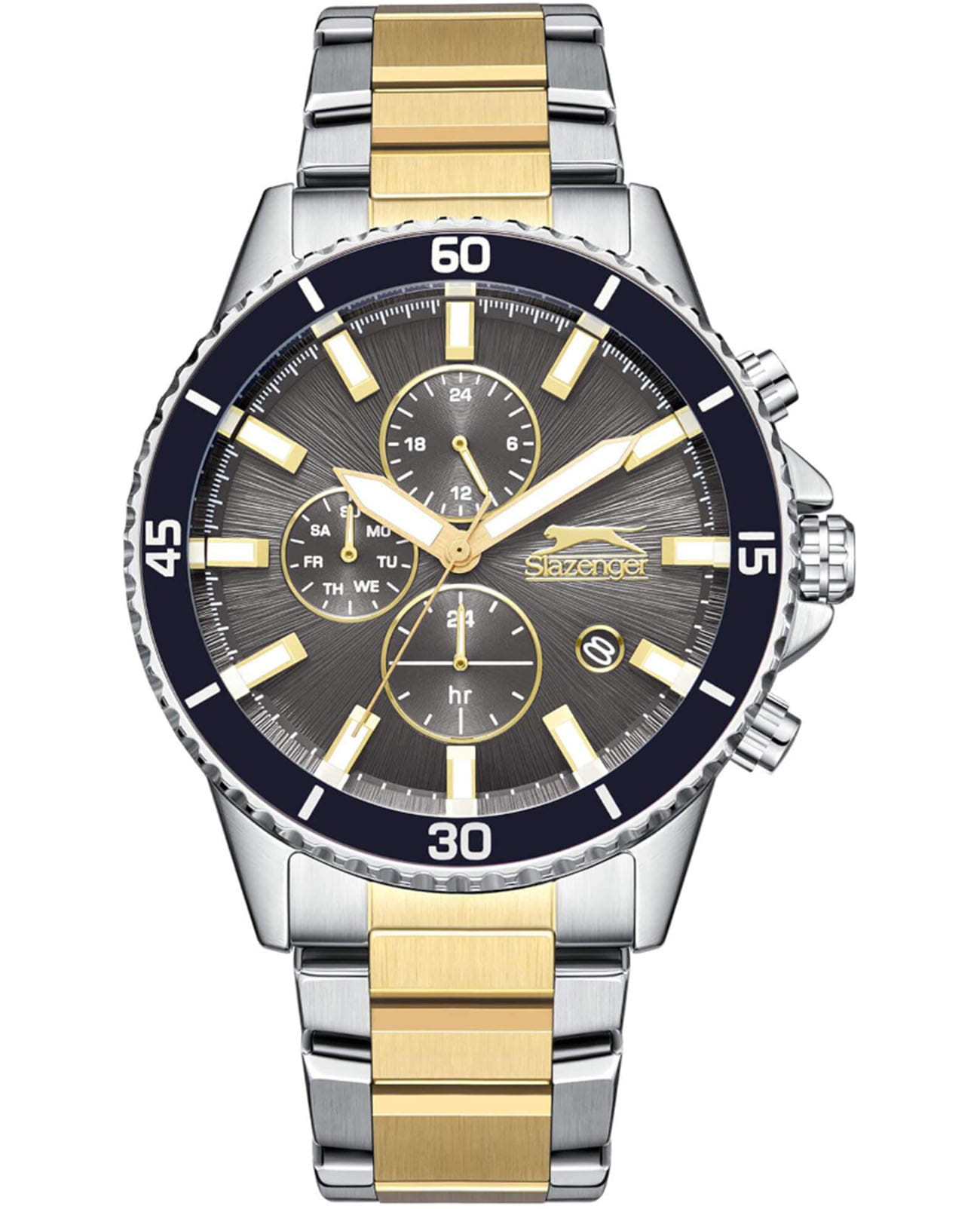 Мужские кварцевые часы Slazenger — это выразительный и функциональный аксессуар. Корпус диаметром 44 мм и толщиной 13 мм выполнен из суперметалла. Безель с IP-покрытиемIP-покрытиеМетод ионного напыления. Демонстрирует повышенную устойчивость к истиранию, окислению и химическим веществам. Под воздействием высокого давления и температуры около 1500°C молекулы металла надёжно соединяются с частицами корпуса часов.. Циферблат серого цвета оформлен индексами и стрелками. Циферблат защищён минеральным стекломМинеральное стеклоМинеральное стекло представляет собой искусственно выращенный минерал кварца. Такое стекло отличается особой устойчивостью к повреждениям и царапинам. Уступает по некоторым качествам сапфировому стеклу.. Механизм — кварцевый. Часы оснащены индикацией дня недели, даты и 12/24-часового формата времени. Окошко даты расположено между 4 и 5 часами. Часы оснащены браслетом из суперметалла с IP-покрытиемIP-покрытиеМетод ионного напыления. Демонстрирует повышенную устойчивость к истиранию, окислению и химическим веществам. Под воздействием высокого давления и температуры около 1500°C молекулы металла надёжно соединяются с частицами корпуса часов. и раскладной застёжкойРаскладная застёжкаТакой тип застёжки используется только на браслетах из металла. Она никогда не раскрывается полностью, происходит разделение на 2 и более частей. Раскладывающая застёжка снизит вероятность потери часов к минимуму.. Водонепроницаемость 100 м позволяет использовать часы для плавания и повседневного ношения. Гарантия — 12 месяцев. Идеальный выбор для тех, кто ценит стиль, функциональность и качество.
