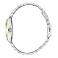 Женские кварцевые часы Slazenger — это элегантный и функциональный аксессуар. Корпус диаметром 33 мм и толщиной 10,5 мм выполнен из суперметалла. БезельБезельВнешний ободок, закрепляющий стекло. В спортивных часах так называется поворотное кольцо с делениями на циферблате, выполняет роль таймера – замеряет отрезки времени на шкале. Неподвижный безель – элемент декора. Однонаправленно вращающийся безель на дайверских часах позволяет фиксировать моменты погружения и выныривания на поверхность. с IP-покрытиемIP-покрытиеМетод ионного напыления. Демонстрирует повышенную устойчивость к истиранию, окислению и химическим веществам. Под воздействием высокого давления и температуры около 1500°C молекулы металла надёжно соединяются с частицами корпуса часов.. Циферблат серебристого цвета оформлен индексами и стрелками. Циферблат защищён минеральным стекломМинеральное стеклоМинеральное стекло представляет собой искусственно выращенный минерал кварца. Такое стекло отличается особой устойчивостью к повреждениям и царапинам. Уступает по некоторым качествам сапфировому стеклу.. Механизм — кварцевый. Часы оснащены индикацией дня недели, даты и 12/24-часового формата времени. Стрелки с люминесцентным покрытиемЛюминесцентное покрытиеПозволяет считывать показания времени в темноте. Производители наносят на стрелки, часовые индексы, безель или поверхность циферблата светонакопительный состав, дающий холодное свечение., обеспечивающим хорошую читаемость в темноте. Часы оснащены браслетом из суперметалла с IP-покрытиемIP-покрытиеМетод ионного напыления. Демонстрирует повышенную устойчивость к истиранию, окислению и химическим веществам. Под воздействием высокого давления и температуры около 1500°C молекулы металла надёжно соединяются с частицами корпуса часов. и раскладной застёжкойРаскладная застёжкаТакой тип застёжки используется только на браслетах из металла. Она никогда не раскрывается полностью, происходит разделение на 2 и более частей. Раскладывающая застёжка снизит вероятность потери часов к минимуму.. Водонепроницаемость 50 м позволяет использовать часы в повседневных условиях. Гарантия — 12 месяцев. Идеальный выбор для тех, кто ценит стиль, функциональность и качество.