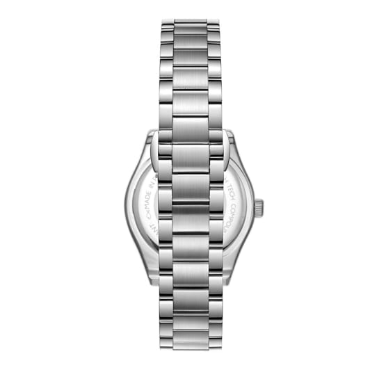 Женские кварцевые часы Slazenger — это элегантный аксессуар. Корпус диаметром 32 мм и толщиной 8 мм выполнен из суперметалла. Циферблат серебристого цвета оформлен индексами и стрелками. Циферблат защищён минеральным стекломМинеральное стеклоМинеральное стекло представляет собой искусственно выращенный минерал кварца. Такое стекло отличается особой устойчивостью к повреждениям и царапинам. Уступает по некоторым качествам сапфировому стеклу.. Механизм — кварцевый. Окошко даты расположено в положении 6 часов. Часы оснащены браслетом из суперметалла на застёжке «бабочка» с кнопкамиЗастёжка "бабочка"Такой вид застёжки дополняется предохранителями, помогающими избежать случайного раскрытия браслета. Обладают изящным исполнением. . Водонепроницаемость 50 м позволяет использовать часы в повседневных условиях. Гарантия — 12 месяцев. Идеальный выбор для тех, кто ценит стиль и качество.