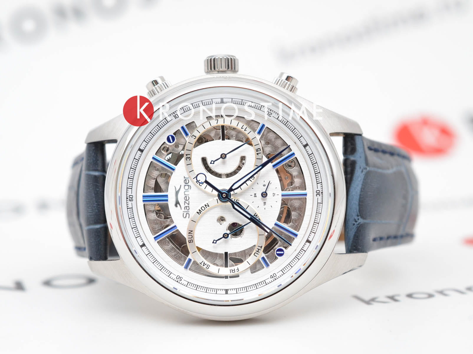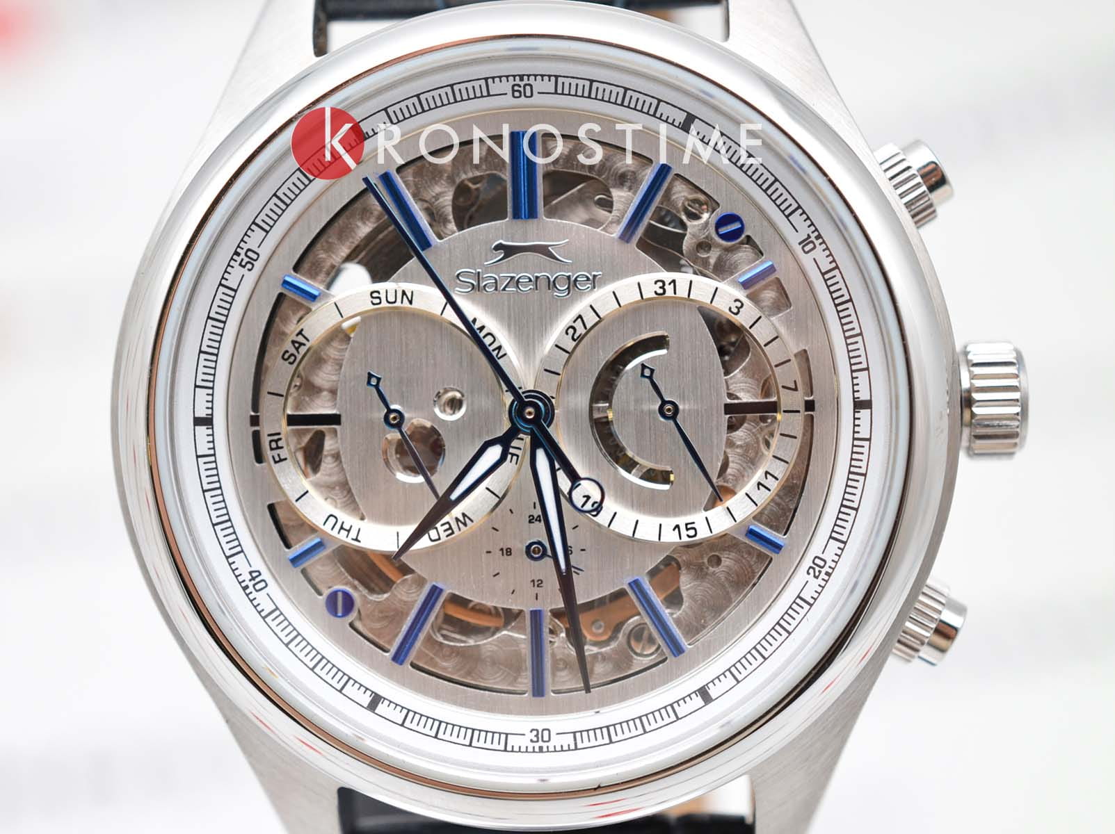 Мужские механические часы с автоподзаводом Slazenger — это выразительный и функциональный аксессуар. Корпус диаметром 41 мм и толщиной 16 мм выполнен из нержавеющей стали 316L. Циферблат серебристого цвета частично скелетонизирован, что позволяет наблюдать за работой механизма. Циферблат защищён минеральным стекломМинеральное стеклоМинеральное стекло представляет собой искусственно выращенный минерал кварца. Такое стекло отличается особой устойчивостью к повреждениям и царапинам. Уступает по некоторым качествам сапфировому стеклу.. Механизм — автоматический. Часы оснащены индикацией дня недели, даты и 12/24-часового формата времени. Прозрачная задняя крышка открывает вид на декорированный механизм. Часы оснащены кожаным ремешком с застёжкой «бабочка» с кнопкамиЗастёжка "бабочка"Такой вид застёжки дополняется предохранителями, помогающими избежать случайного раскрытия браслета. Обладают изящным исполнением. . Водонепроницаемость 100 м позволяет использовать часы для плавания и повседневного ношения. Гарантия — 12 месяцев. Идеальный выбор для тех, кто ценит стиль, функциональность и качество.