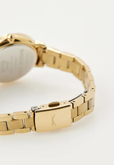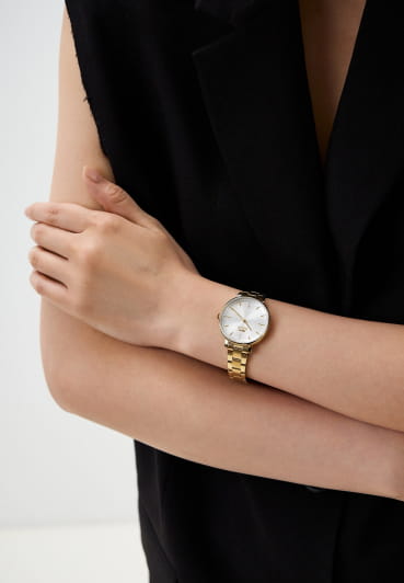 Женские кварцевые часы Slazenger — элегантный аксессуар с гармоничным дизайном и продуманной конструкцией. Корпус диаметром 35 мм и толщиной 8,5 мм выполнен из суперметалла с IP-покрытиемIP-покрытиеМетод ионного напыления. Демонстрирует повышенную устойчивость к истиранию, окислению и химическим веществам. Под воздействием высокого давления и температуры около 1500°C молекулы металла надёжно соединяются с частицами корпуса часов.. Циферблат серебристого цвета оформлен индексами и стрелками. Циферблат защищён минеральным стекломМинеральное стеклоМинеральное стекло представляет собой искусственно выращенный минерал кварца. Такое стекло отличается особой устойчивостью к повреждениям и царапинам. Уступает по некоторым качествам сапфировому стеклу.. Механизм — кварцевый калибр Miyota 2035. Браслет интегрирован в корпус, обеспечивая цельный и утончённый образ. Часы оснащены раскладной застёжкойРаскладная застёжкаТакой тип застёжки используется только на браслетах из металла. Она никогда не раскрывается полностью, происходит разделение на 2 и более частей. Раскладывающая застёжка снизит вероятность потери часов к минимуму.. Водонепроницаемость 30 м позволяет использовать часы в повседневных условиях. Стильное решение для тех, кто ценит лаконичность и качество.