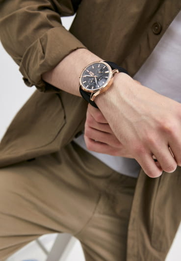 Мужские кварцевые часы Slazenger — это выразительный и функциональный аксессуар. Корпус диаметром 47 мм и толщиной 15 мм выполнен из суперметалла с IP-покрытиемIP-покрытиеМетод ионного напыления. Демонстрирует повышенную устойчивость к истиранию, окислению и химическим веществам. Под воздействием высокого давления и температуры около 1500°C молекулы металла надёжно соединяются с частицами корпуса часов.. Циферблат чёрного цвета оформлен индексами, стрелками и тремя вынесенными субциферблатами: для отображения дня недели, даты и 24-часового формата времени. Стрелки с люминесцентным покрытиемЛюминесцентное покрытиеПозволяет считывать показания времени в темноте. Производители наносят на стрелки, часовые индексы, безель или поверхность циферблата светонакопительный состав, дающий холодное свечение., обеспечивающим читаемость в темноте. Циферблат защищён минеральным стекломМинеральное стеклоМинеральное стекло представляет собой искусственно выращенный минерал кварца. Такое стекло отличается особой устойчивостью к повреждениям и царапинам. Уступает по некоторым качествам сапфировому стеклу.. Часы оснащены силиконовым ремешком на классической пряжке. Водонепроницаемость 50 м позволяет использовать часы в повседневных условиях. Идеальный выбор для тех, кто ценит стиль и качество.