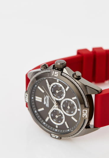 Мужские кварцевые часы Slazenger — это выразительный и функциональный аксессуар. Корпус диаметром 46 мм и толщиной 12 мм выполнен из суперметалла с IP-покрытиемIP-покрытиеМетод ионного напыления. Демонстрирует повышенную устойчивость к истиранию, окислению и химическим веществам. Под воздействием высокого давления и температуры около 1500°C молекулы металла надёжно соединяются с частицами корпуса часов.. Циферблат чёрного цвета оформлен индексами, стрелками и тремя вынесенными субциферблатами: для отображения дня недели, даты и 24-часового формата времени. Циферблат защищён минеральным стекломМинеральное стеклоМинеральное стекло представляет собой искусственно выращенный минерал кварца. Такое стекло отличается особой устойчивостью к повреждениям и царапинам. Уступает по некоторым качествам сапфировому стеклу.. Часы оснащены силиконовым ремешком на классической пряжке. Водонепроницаемость 50 м позволяет использовать часы в повседневных условиях. Идеальный выбор для тех, кто ценит стиль и качество.