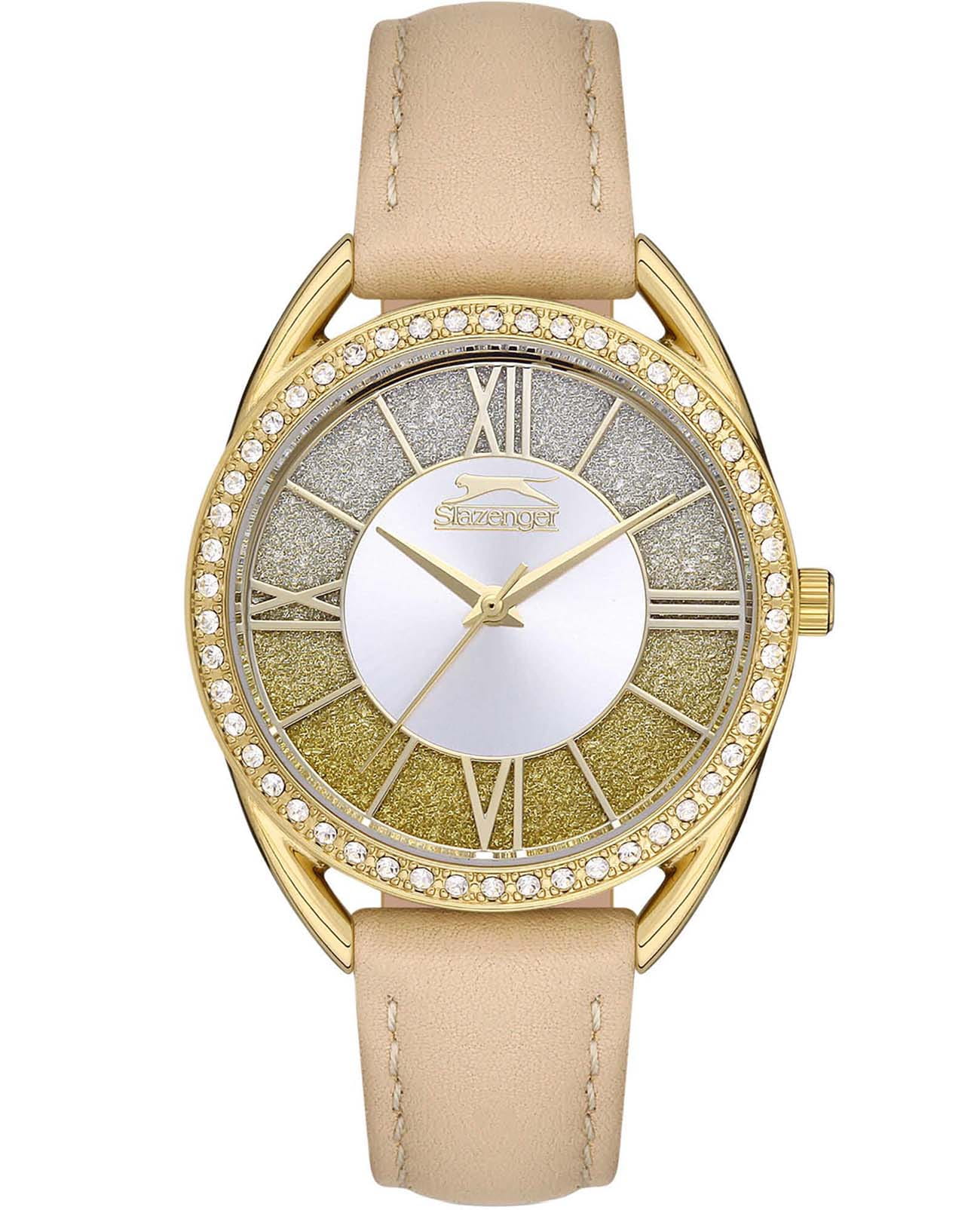 Часы Slazenger SL.09.6538.3.05 – это изысканный аксессуар, который станет стильным акцентом любого образа. Модель оснащена надежным кварцевым механизмом. Корпус из прочного суперметалла с IP-покрытиемIP-покрытиеМетод ионного напыления. Демонстрирует повышенную устойчивость к истиранию, окислению и химическим веществам. Под воздействием высокого давления и температуры около 1500°C молекулы металла надёжно соединяются с частицами корпуса часов. размером 35 мм украшен россыпью сверкающих фианитов по безелюБезельВнешний ободок, закрепляющий стекло. В спортивных часах так называется поворотное кольцо с делениями на циферблате, выполняет роль таймера – замеряет отрезки времени на шкале. Неподвижный безель – элемент декора. Однонаправленно вращающийся безель на дайверских часах позволяет фиксировать моменты погружения и выныривания на поверхность., что придает часам особое сияние и элегантность. Изысканный циферблат с логотипом бренда защищен стойким к царапинам минеральным стекломМинеральное стеклоМинеральное стекло представляет собой искусственно выращенный минерал кварца. Такое стекло отличается особой устойчивостью к повреждениям и царапинам. Уступает по некоторым качествам сапфировому стеклу.. Четкие часовые метки в виде лаконичных штрихов и римских цифр обеспечивают удобство чтения времени. Элегантный кожаный ремень надежно фиксируется на запястье с помощью стандартной застежки. Водозащита 30WR позволяет не беспокоиться о случайных брызгах. Вес изделия составляет 34 грамма, что делает часы комфортными для ежедневного ношения. Эти часы идеально подойдут для тех, кто ценит гармонию стиля, качества и функциональности.