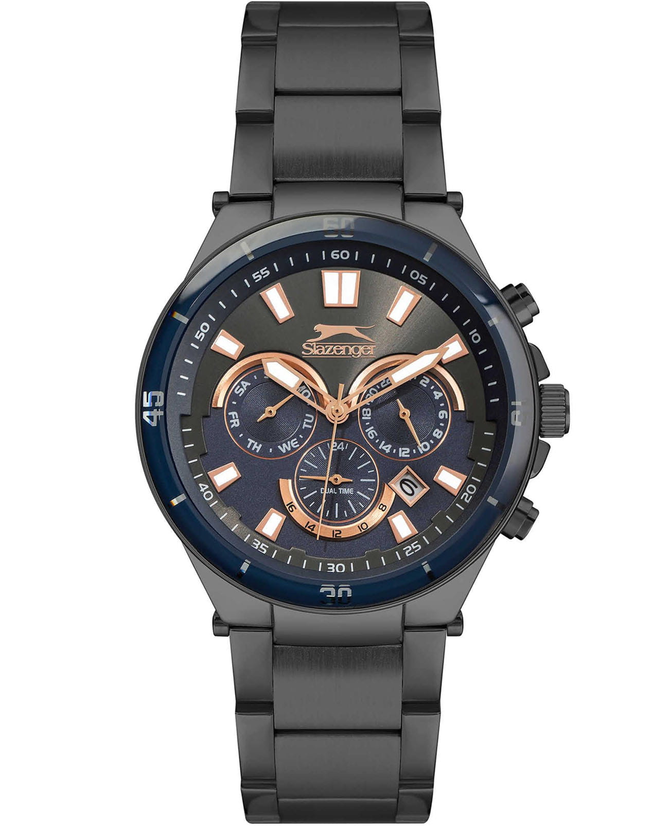 Мужские наручные часы Slazenger SL.09.6557.2.04 сочетают в себе классический дизайн и надежность современных технологий. Модель обладает круглым корпусом диаметром 44 мм, изготовленным из суперметалла с IP-покрытиемIP-покрытиеМетод ионного напыления. Демонстрирует повышенную устойчивость к истиранию, окислению и химическим веществам. Под воздействием высокого давления и температуры около 1500°C молекулы металла надёжно соединяются с частицами корпуса часов., что обеспечивает высокую устойчивость к внешним воздействиям. Браслет выполнен из суперметалла с IP-покрытиемIP-покрытиеМетод ионного напыления. Демонстрирует повышенную устойчивость к истиранию, окислению и химическим веществам. Под воздействием высокого давления и температуры около 1500°C молекулы металла надёжно соединяются с частицами корпуса часов. с раскладной застёжкойРаскладная застёжкаТакой тип застёжки используется только на браслетах из металла. Она никогда не раскрывается полностью, происходит разделение на 2 и более частей. Раскладывающая застёжка снизит вероятность потери часов к минимуму., гарантирующей комфортное ношение и безопасность. Циферблат черного цвета декорирован стрелками с люминесцентным покрытиемЛюминесцентное покрытиеПозволяет считывать показания времени в темноте. Производители наносят на стрелки, часовые индексы, безель или поверхность циферблата светонакопительный состав, дающий холодное свечение., которые обеспечивают читаемость времени даже в условиях недостаточной освещенности. Для защиты используется минеральное стеклоМинеральное стеклоМинеральное стекло представляет собой искусственно выращенный минерал кварца. Такое стекло отличается особой устойчивостью к повреждениям и царапинам. Уступает по некоторым качествам сапфировому стеклу., обеспечивающее прочную защиту от царапин. Часы работают на кварцевом механизме, что гарантирует точное время без необходимости подзаводки. Модель также оснащена функциями отображения второго часового пояса, дня недели и текущего времени в 24-часовом формате на малых циферблатах, делая её практичной для повседневного использования и путешествий. Водонепроницаемость часов достигает 5 атмосфер (WR50), что позволяет использовать их во время плавания, однако не рекомендуется для дайвинга или других водных видов спорта.