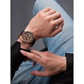 Внутри установлен японский механический механизм Miyota 8215 с автоподзаводом, обеспечивающий высокую точность хода. Запас хода составляет около 40 часов. На циферблате отображается текущее число месяца.
