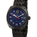 Часы Спецназ "Группа А" С9664419-8215 — коллекционная модель, созданная по заказу легендарного спецподразделения ФСБ «Группа А» («Альфа»). Корпус диаметром 45 мм выполнен из титана с PVD-покрытиемPVDУльтратонкое покрытие наносится в технике вакуумного напыления, сочетает в себе нитрид титана особой прочности со слоем золота или оксида хрома. Несёт в себе декоративную или защитную функцию. чёрного цвета, а синий циферблат защищён сапфировым стекломСапфировое стеклоПрочный и надёжный материал из кристалла сапфира синтетического происхождения, характеризующийся особой твёрдостью и устойчивостью к царапинам и повреждениям. с антибликовым покрытием.