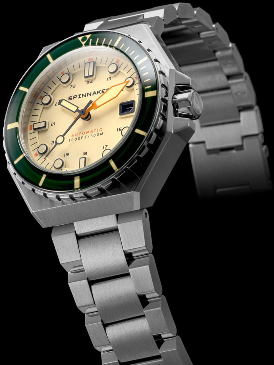 Мужские итальянские механические часы с автоподзаводом Spinnaker Dumas SP-5081-CC, механический механизм (автоматический калибр) с высокой точностью. Циферблат с люминесцентным покрытиемЛюминесцентное покрытиеПозволяет считывать показания времени в темноте. Производители наносят на стрелки, часовые индексы, безель или поверхность циферблата светонакопительный состав, дающий холодное свечение. стрелок, меток и безеляБезельВнешний ободок, закрепляющий стекло. В спортивных часах так называется поворотное кольцо с делениями на циферблате, выполняет роль таймера – замеряет отрезки времени на шкале. Неподвижный безель – элемент декора. Однонаправленно вращающийся безель на дайверских часах позволяет фиксировать моменты погружения и выныривания на поверхность. дополнен сапфировым стекломСапфировое стеклоПрочный и надёжный материал из кристалла сапфира синтетического происхождения, характеризующийся особой твёрдостью и устойчивостью к царапинам и повреждениям. с антибликовым покрытием, устойчивым к появлению царапин и обладающее высокой прозрачностью. Класс водозащиты: 300 метров (погружение с аквалангом). Корпус часов изготовлен из нержавеющей стали 316L. Благодаря обновленному безелюБезельВнешний ободок, закрепляющий стекло. В спортивных часах так называется поворотное кольцо с делениями на циферблате, выполняет роль таймера – замеряет отрезки времени на шкале. Неподвижный безель – элемент декора. Однонаправленно вращающийся безель на дайверских часах позволяет фиксировать моменты погружения и выныривания на поверхность. с IP-покрытиемIP-покрытиеМетод ионного напыления. Демонстрирует повышенную устойчивость к истиранию, окислению и химическим веществам. Под воздействием высокого давления и температуры около 1500°C молекулы металла надёжно соединяются с частицами корпуса часов. с более техническим изгибом, мастерство и точность изготовления часов Spinnaker Watches демонстрируются в безелеБезельВнешний ободок, закрепляющий стекло. В спортивных часах так называется поворотное кольцо с делениями на циферблате, выполняет роль таймера – замеряет отрезки времени на шкале. Неподвижный безель – элемент декора. Однонаправленно вращающийся безель на дайверских часах позволяет фиксировать моменты погружения и выныривания на поверхность. из закаленного стекла. Стальной браслет на раскладной застёжкеРаскладная застёжкаТакой тип застёжки используется только на браслетах из металла. Она никогда не раскрывается полностью, происходит разделение на 2 и более частей. Раскладывающая застёжка снизит вероятность потери часов к минимуму..