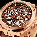 Stuhrling 379.05 — футуристические мужские часы, сочетающие смелый инженерный дизайн и надёжную механику. Архитектурный циферблат с многослойной структурой придаёт модели динамику и глубину. Стрелки и метки с люминесцентным покрытиемЛюминесцентное покрытиеПозволяет считывать показания времени в темноте. Производители наносят на стрелки, часовые индексы, безель или поверхность циферблата светонакопительный состав, дающий холодное свечение.. Корпус из нержавеющей стали с PVD-покрытиемPVDУльтратонкое покрытие наносится в технике вакуумного напыления, сочетает в себе нитрид титана особой прочности со слоем золота или оксида хрома. Несёт в себе декоративную или защитную функцию. выполнен с филигранной обработкой граней, подчёркивая технический характер часов. Прочное стекло KrysternaKrysternaKrysterna — инновационное стекло для наручных часов. Благодаря уникальной структуре, Krysterna объединяет ключевые преимущества двух материалов: твердость сапфира, защищающую от царапин, и гибкость минерального стекла, обеспечивающую устойчивость к деформациям. Такая комбинация делает его идеальным решением для часов, подверженных экстремальным нагрузкам, сохраняя при этом оптическую прозрачность. защищает сложную конструкцию от повреждений, сохраняя идеальную прозрачность. Кожаный ремень с контрастной строчкой и стандартной застежкой, обеспечивает комфорт и надёжную посадку. Stuhrling — выбор для тех, кто ценит оригинальность и технологичный стиль, где каждая деталь работает на впечатление.