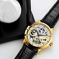 Stuhrling 3924.2 — эффектные механические мужские часы, созданные для тех, кто ценит инженерную эстетику и смелые формы. Открытый скелетонизированный циферблат демонстрирует работу механизма с изящной симметрией, что придаёт модели философскую глубину и визуальную гармонию. Золотистый корпус с PVD-покрытиемPVDУльтратонкое покрытие наносится в технике вакуумного напыления, сочетает в себе нитрид титана особой прочности со слоем золота или оксида хрома. Несёт в себе декоративную или защитную функцию. мощными ушками и фактурной заводной головкой подчёркивает статус владельца. Часы комплектуются классическим чёрным кожаным ремешком с аккуратной прострочкой и стандартной застежкой. Защищённые стеклом KrysternaKrysternaKrysterna — инновационное стекло для наручных часов. Благодаря уникальной структуре, Krysterna объединяет ключевые преимущества двух материалов: твердость сапфира, защищающую от царапин, и гибкость минерального стекла, обеспечивающую устойчивость к деформациям. Такая комбинация делает его идеальным решением для часов, подверженных экстремальным нагрузкам, сохраняя при этом оптическую прозрачность., они устойчивы к царапинам и сохраняют прозрачность при любых условиях. Stuhrling — это не просто аксессуар, а выразительное воплощение механической мощи и восточной символики.