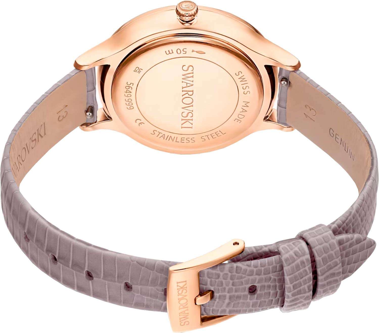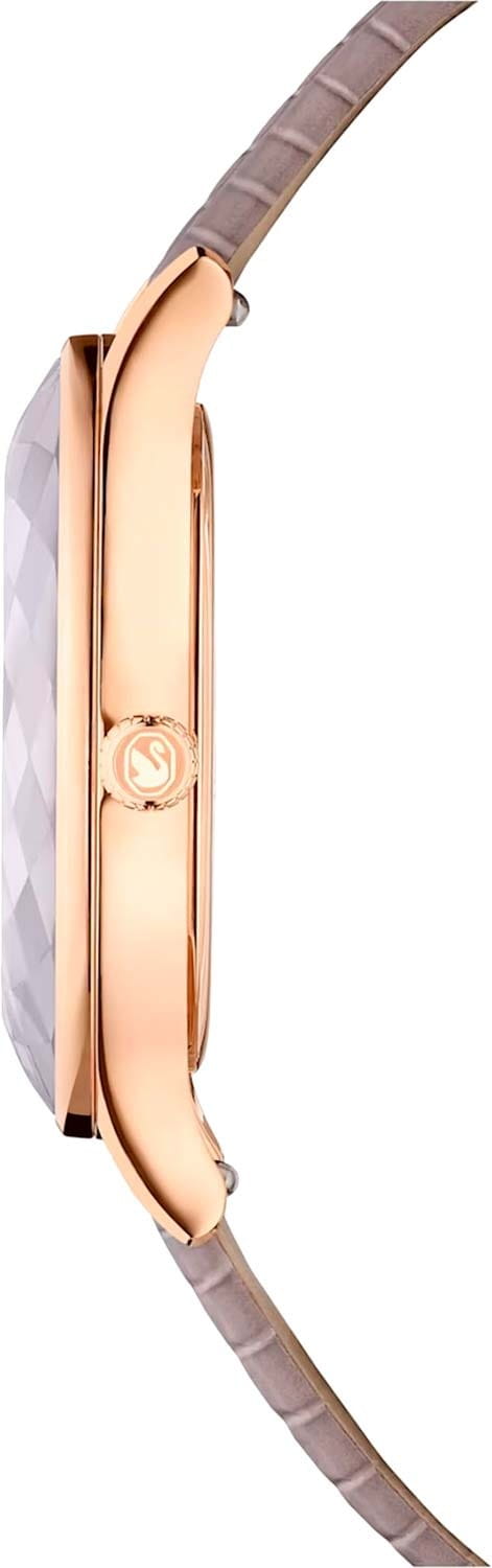 Часы Swarovski 5649999 представляют собой изысканное воплощение швейцарского мастерства и современного дизайна. Эти кварцевые часы выполнены из стали с розовым PVDPVDУльтратонкое покрытие наносится в технике вакуумного напыления, сочетает в себе нитрид титана особой прочности со слоем золота или оксида хрома. Несёт в себе декоративную или защитную функцию.-покрытием, что придает им утонченный и стильный вид. Бежевый циферблат украшен кристаллами Swarovski и изображением знаменитого лебедя на позиции 12 часов, придавая часам особую изысканность и блеск. Корпус диаметром 33 мм и ремешок из натуральной итальянской телячьей кожи темно-серого цвета с тиснением под кожу ящерицы со стандартной застежкой обеспечивают комфортное ношение и элегантный внешний вид. Сапфировое стеклоСапфировое стеклоПрочный и надёжный материал из кристалла сапфира синтетического происхождения, характеризующийся особой твёрдостью и устойчивостью к царапинам и повреждениям. защищает циферблат от царапин и повреждений, обеспечивая долговечность и надежность изделия. БезельБезельВнешний ободок, закрепляющий стекло. В спортивных часах так называется поворотное кольцо с делениями на циферблате, выполняет роль таймера – замеряет отрезки времени на шкале. Неподвижный безель – элемент декора. Однонаправленно вращающийся безель на дайверских часах позволяет фиксировать моменты погружения и выныривания на поверхность. также сделан из сапфирового стеклаСапфировое стеклоПрочный и надёжный материал из кристалла сапфира синтетического происхождения, характеризующийся особой твёрдостью и устойчивостью к царапинам и повреждениям.. Водозащита 50 WR позволяет не беспокоиться о случайных контактах с водой в повседневной жизни. Клиновидные стрелки в стиле Dauphine и рифленая заводная головка с логотипом Swarovski завершают образ, делая эти часы идеальным аксессуаром для тех, кто ценит качество и стиль в каждом элементе. Эти часы не только функциональны, но и являются настоящим произведением искусства, подчеркивающим ваш изысканный вкус.