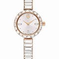 Часы Swarovski 5677484 – это гармоничное сочетание элегантности и функциональности, созданное для ценителей изысканных аксессуаров. Эти швейцарские кварцевые часы заключены в корпус из стали с розовым PVDPVDУльтратонкое покрытие наносится в технике вакуумного напыления, сочетает в себе нитрид титана особой прочности со слоем золота или оксида хрома. Несёт в себе декоративную или защитную функцию.-покрытием, который привлекает внимание своим утонченным стилем. Серебристый циферблат, выполненный по технологии Sunray, украшен логотипом Swarovski в виде лебедя на отметке 12 часов, добавляя часам особый шарм. БезельБезельВнешний ободок, закрепляющий стекло. В спортивных часах так называется поворотное кольцо с делениями на циферблате, выполняет роль таймера – замеряет отрезки времени на шкале. Неподвижный безель – элемент декора. Однонаправленно вращающийся безель на дайверских часах позволяет фиксировать моменты погружения и выныривания на поверхность., браслет и циферблат украшены мерцающими кристаллами Swarovski, создающими эффектный блеск и подчеркивающими роскошь изделия. Заводная головка дополнена кристаллом круглой огранки, придающим часам завершенность и изящество. Минеральное стеклоМинеральное стеклоМинеральное стекло представляет собой искусственно выращенный минерал кварца. Такое стекло отличается особой устойчивостью к повреждениям и царапинам. Уступает по некоторым качествам сапфировому стеклу. надежно защищает циферблат, а водозащита 50 WR позволяет не беспокоиться о контакте с водой в повседневных ситуациях. Стальной браслет с розовым PVDPVDУльтратонкое покрытие наносится в технике вакуумного напыления, сочетает в себе нитрид титана особой прочности со слоем золота или оксида хрома. Несёт в себе декоративную или защитную функцию.-покрытием, декорированный кристаллами, обеспечивает комфортное ношение и стильный внешний вид. С диаметром корпуса 25 мм и длиной браслета 16,5 см, эти часы станут изысканным дополнением к любому наряду. Часы Swarovski 5677484 – это не просто аксессуар, а настоящее произведение искусства, способное стать ярким акцентом вашего образа.
