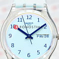 Часы Swatch Gent Standard GE713 — это стильный и современный аксессуар для тех, кто ценит лёгкость и комфорт. Часы идеально подойдут как для мужчин, так и для женщин. Модель Gent Standard GE713 сочетает в себе кварцевый механизм, ремешок голубого цвета из матового силикона и пластиковый корпус с белоснежным циферблатом, покрытым нежно-голубым стеклом. Окошко даты и дня недели с увеличительным стеклом в положении 3 часа. Водозащита 30 метров делает часы практичными для повседневного использования. Эти часы подойдут для повседневного ношения и станут ярким акцентом в вашем наряде.