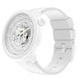 Часы Swatch SB03W100 — это стильный и современный аксессуар для тех, кто ценит лёгкость и комфорт. Часы идеально подойдут как для мужчин, так и для женщин. Прекрасный образец часов, выполненных полностью из материалов биологического происхождения: открытый механизм и биокерамикаБиокерамикаБиокерамика — это материал, который на две трети состоит из керамики, на одну треть — из биопластика. Он сочетает в себе лучшие качества обоих материалов и обладает прочностью и шелковистой на ощупь текстурой., которая создает ощущение шелковистости. Впечатляющий дизайн белого цвета — инновация в своем лучшем проявлении. На часовую, минутную стрелки нанесено люминесцентное покрытиеЛюминесцентное покрытиеПозволяет считывать показания времени в темноте. Производители наносят на стрелки, часовые индексы, безель или поверхность циферблата светонакопительный состав, дающий холодное свечение., которое светится в темноте, создавая необычное изображение. Водозащита 30 метров делает часы практичными для повседневного использования. Эти часы подойдут для повседневного ношения и станут ярким акцентом в вашем наряде.