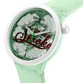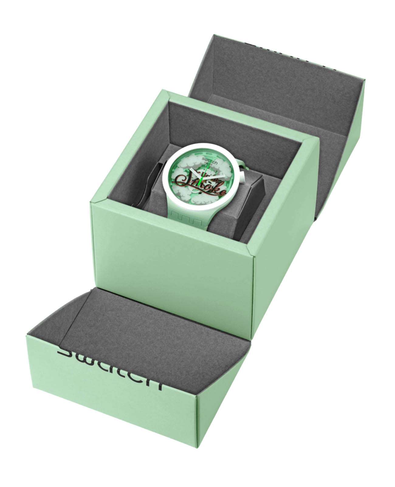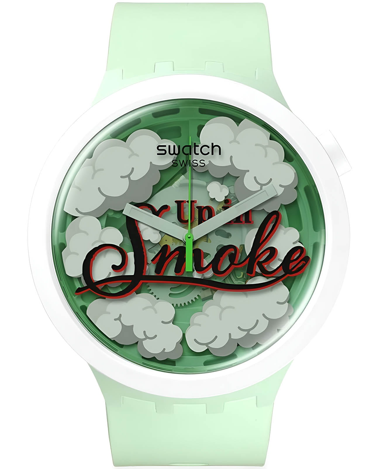 Часы Swatch SB03Z103 — это стильный и современный аксессуар для тех, кто ценит лёгкость и комфорт. Часы идеально подойдут как для мужчин, так и для женщин. Эти крупные зеленые часы со знаком "Up in Smoke" имеют корпус зеленого цвета и безельБезельВнешний ободок, закрепляющий стекло. В спортивных часах так называется поворотное кольцо с делениями на циферблате, выполняет роль таймера – замеряет отрезки времени на шкале. Неподвижный безель – элемент декора. Однонаправленно вращающийся безель на дайверских часах позволяет фиксировать моменты погружения и выныривания на поверхность. белого цвета из биокерамикиБиокерамикаБиокерамика — это материал, который на две трети состоит из керамики, на одну треть — из биопластика. Он сочетает в себе лучшие качества обоих материалов и обладает прочностью и шелковистой на ощупь текстурой., матовый силиконовый ремешок зеленого цвета. Водозащита 30 метров делает часы практичными для повседневного использования. Эти часы подойдут для повседневного ношения и станут ярким акцентом в вашем наряде.