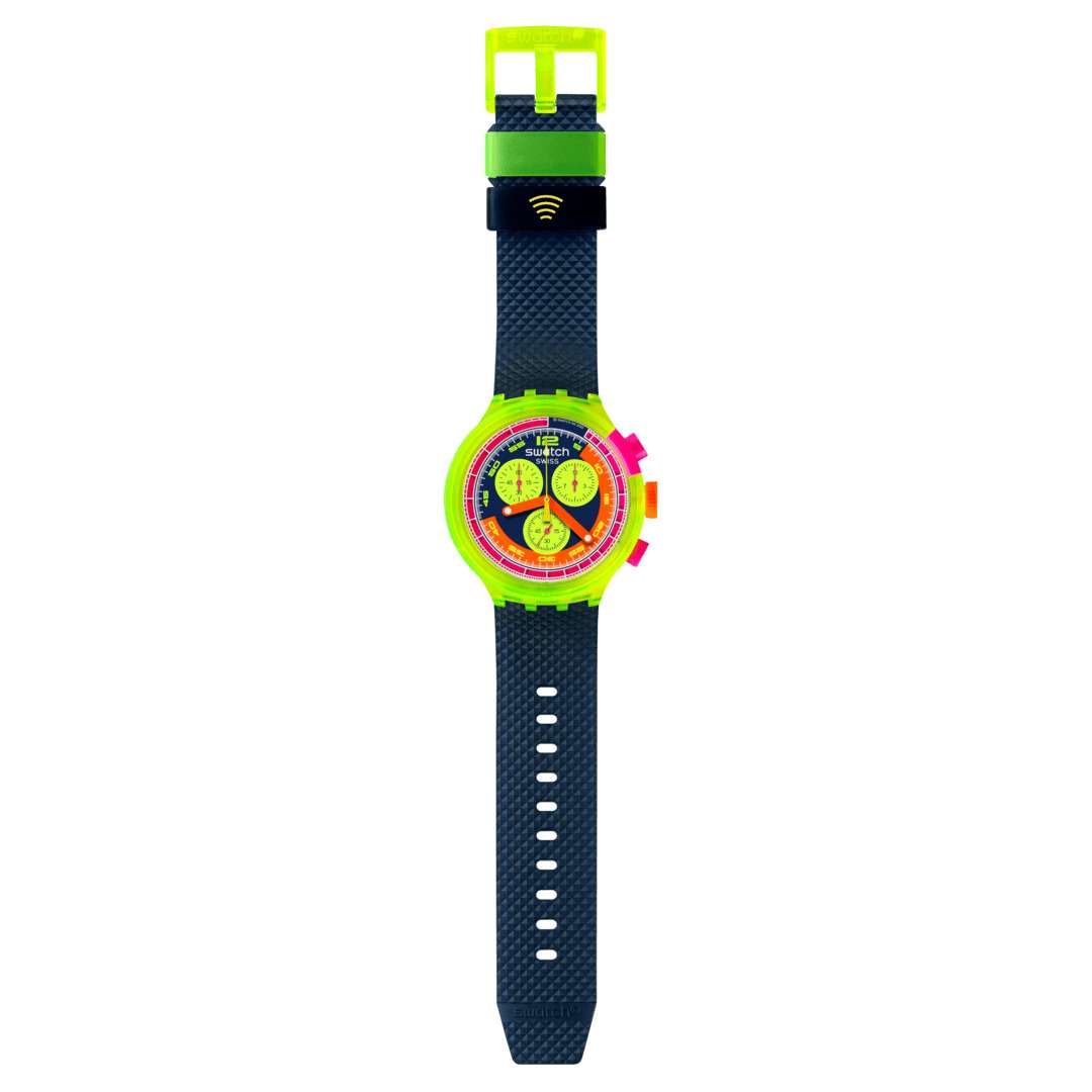 Часы Swatch SB06J101-5300 — это стильный и современный аксессуар для тех, кто ценит лёгкость и комфорт. Часы идеально подойдут как для мужчин, так и для женщин. Эти объемные ретро-часы созданы по мотивам часов Swatch Chrono 90-х годов: коллекционные GRAND PRIX SCJ101. Часы с характерным дизайном и яркой кнопкой хронографаХронографФункция позволяет измерять отрезки времени с особой точностью: часы, минуты, секунды. Верным признаком хронографа является наличие на циферблате 3 дополнительных окошек-счётчиков. на двух часах – это идеальные часы, чтобы достичь неожиданных побед. На их необычайно красочном неоновом циферблате с ярко-желтым корпусом шкала тахиметраТахиметрРазмеченная шкала, располагается на ободке или безеле часов. Тахиметр позволяет рассчитать скорость на определённом участке пути, расстояние измеряется в километрах или милях.. На часовую, минутную стрелки оранжевого цвета нанесено люминесцентное покрытиеЛюминесцентное покрытиеПозволяет считывать показания времени в темноте. Производители наносят на стрелки, часовые индексы, безель или поверхность циферблата светонакопительный состав, дающий холодное свечение., которое светится в темноте, создавая необычное изображение. Модель дополнена темно-синим ремешком из биоматериала. Эти часы имеют NFC модуль, поэтому это несомненно лучший способ оплачивать покупки. Водозащита 30 метров делает часы практичными для повседневного использования. Эти часы подойдут для повседневного ношения и станут ярким акцентом в вашем наряде.