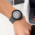 Современные молодежные часы с функцией бесконтактной оплаты, Swatch SO27M104-5300, идеально подойдут для тех, кто стремится идти в ногу со временем и получать максимум от жизни. Эти наручные скелетонизированные часы от бренда Swatch. Имеют унисекс-дизайн. Встроенный NFC-чип позволяет использовать бесконтактную оплату SwatchPAY!, разработанную в сотрудничестве с Mastercard. Эта функция будет работать даже в случае разрядки батареи часов. С помощью приложения SwatchPAY! на смартфоне вы сможете управлять картой, блокировать её и отслеживать свои платежи. Часы имеют круглый пластиковый корпус и метки в виде штрихов. Стекло выполнено из многослойного акрила, а заводная головка расположена в положении 2 часа. Единственным отличием от обычных часов является значок Wi-Fi на ремешке, который оснащен классической алюминиевой застежкой.