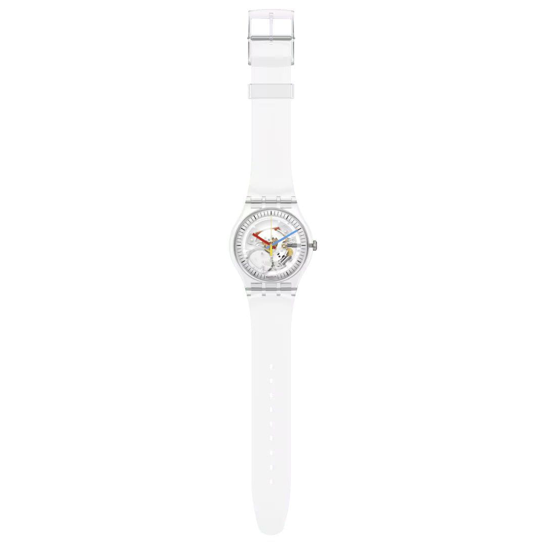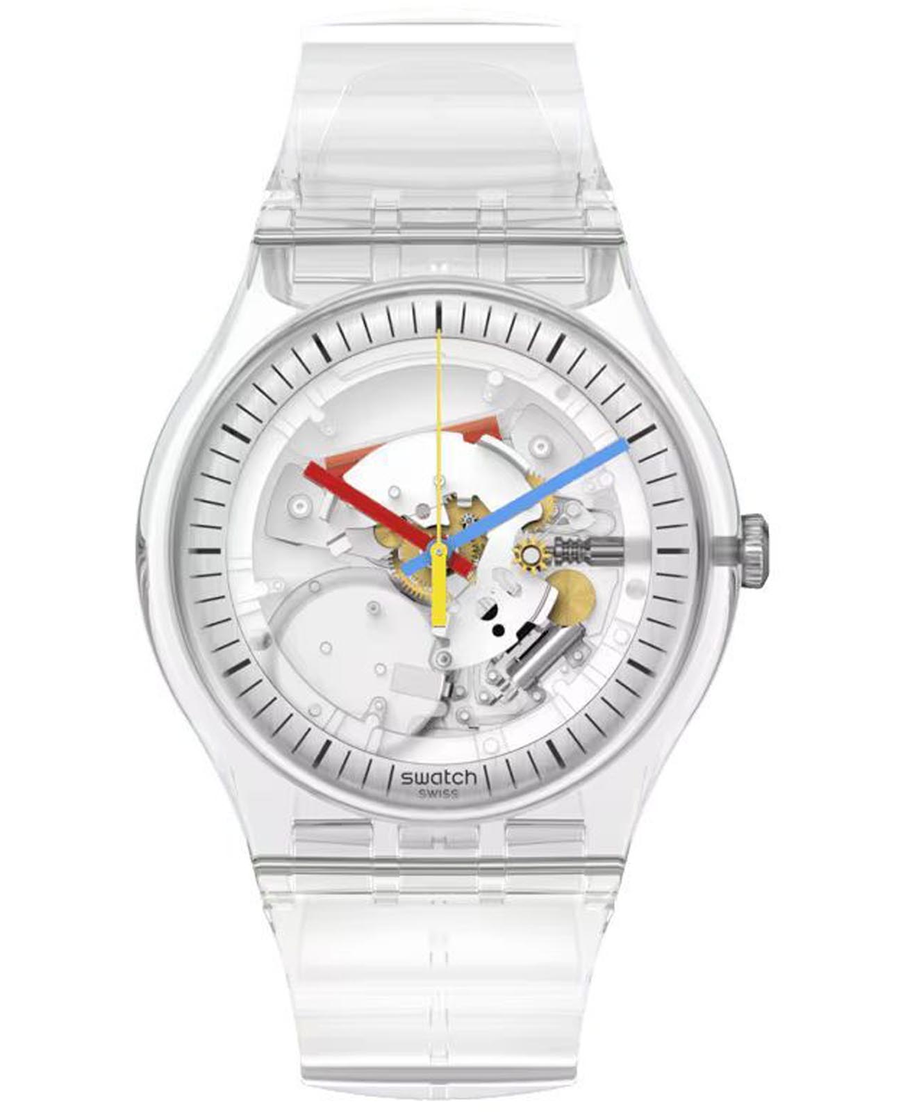 Часы Swatch SO29K100 — стильный и надежный аксессуар. Современный взгляд на классику. Эти полностью прозрачные часы имеют корпус из биоматериала, циферблат с серебристым кольцом, черными индексами и цветными стрелками, и видимые элементы механизма. Ремешок из пластика TPU на стандартной застёжке. Внутри часов установлен надежный кварцевый механизм, который обеспечивает точность хода. Эти часы водонепроницаемы до 30 метров, что позволяет не беспокоиться о случайных брызгах или дождевых каплях. Swatch SO29K100 — это идеальный выбор для тех, кто ценит сочетание стиля, комфорта и функциональности в одном аксессуаре.