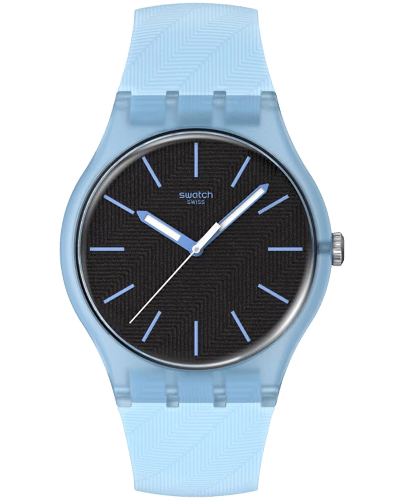 Мужские наручные часы Swatch BLUE MOVES SO29L101 — это стильный и современный аксессуар для тех, кто ценит лёгкость и комфорт. Корпус выполнен из пластика, диаметром 41 мм и толщиной 9.85 мм, что обеспечивает долговечность и утончённый внешний вид. Циферблат защищён органическим стеклом, устойчивым к повреждениям. Модель оснащена кварцевым механизмом, обеспечивающим высокую точность хода. Часовая и минутная стрелки с люминесцентным покрытиемЛюминесцентное покрытиеПозволяет считывать показания времени в темноте. Производители наносят на стрелки, часовые индексы, безель или поверхность циферблата светонакопительный состав, дающий холодное свечение.. Силиконовый текстурированный матово-голубой ремешок на стандартной застёжке гармонично дополняет корпус и обеспечивает комфортное ношение. Водозащита 30 метров позволит защитить корпус от случайных брызг или капель дождя. Эти часы подойдут для повседневного ношения и станут ярким акцентом в вашем наряде.