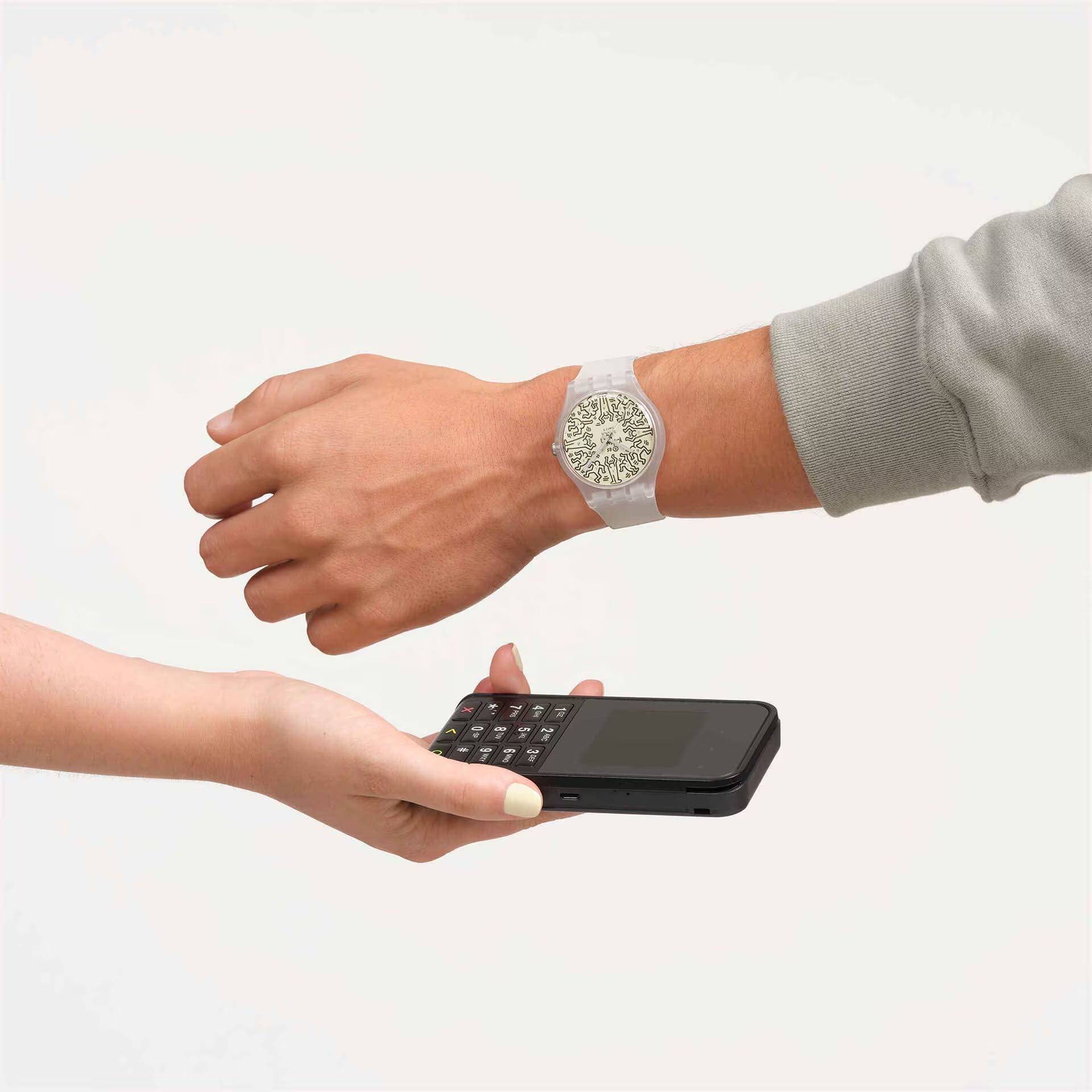 Часы Swatch SO29Z146-5300 —  стильный и удобный аксессуар. Часы поддерживают функцию бесконтактной оплаты SwatchPAY!. Матовый светло-бежевый циферблат этих часов украшен серыми рисунками, подписью и авторскими правами художника Кита Харинга, а также интерпретацией логотипа Swatch. Серебристые часовая, минутная и секундная стрелки защищены стеклом из биоматериала. Матовый прозрачный корпус из биоматериала, а также матовые прозрачные ремешок, петля и пряжка завершают дизайн этих часов. Ремешок силиконовый на стандартной застёжке. Внутри часов установлен надежный кварцевый механизм, который обеспечивает точность хода. Эти часы водонепроницаемы до 30 метров, что позволяет не беспокоиться о случайных брызгах или дождевых каплях. Swatch SO29Z146-5300 — это идеальный выбор для тех, кто ценит сочетание стиля, комфорта и функциональности в одном аксессуаре.