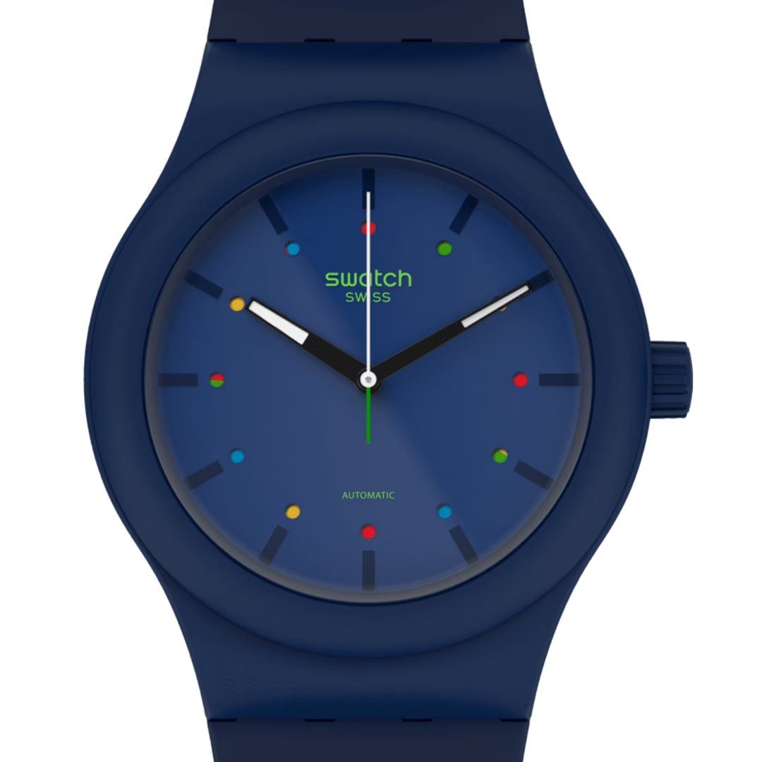 Часы Swatch SO30N400 — стильный и удобный аксессуар. Новейшее дополнение к коллекции 1983 года — это SISTEM51 из биоматериалов. Темно-синий цвет часов украшен цветными индексами, оттенки которых перекликаются с декорированным механизмом, который можно увидеть с задней стороны корпуса часов. На нем написано сообщение, которое является настоящим призывом к действию: "не опаздывай" — в соответствии с моделями Gent и New Gent, уже представленными на рынке. Часы выполнены в темно-синем цвете с ярко-зелеными надписями на циферблате и черно-белыми стрелками. Часовая и минутная стрелки - с люминесцентным покрытиемЛюминесцентное покрытиеПозволяет считывать показания времени в темноте. Производители наносят на стрелки, часовые индексы, безель или поверхность циферблата светонакопительный состав, дающий холодное свечение., светятся в темноте. Ремешок из биоматериала на стандартной застёжке. Эти часы водонепроницаемы до 30 метров, что позволяет не беспокоиться о случайных брызгах или дождевых каплях. Swatch SO30N400 — это идеальный выбор для тех, кто ценит сочетание стиля, комфорта и функциональности в одном аксессуаре.