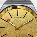 Часы Swatch SS07B109G — это стильный и современный аксессуар для тех, кто ценит лёгкость и комфорт. Часы идеально подойдут как для мужчин, так и для женщин. Эти великолепные ультратонкие часы из нержавеющей стали c PVDPVDУльтратонкое покрытие наносится в технике вакуумного напыления, сочетает в себе нитрид титана особой прочности со слоем золота или оксида хрома. Несёт в себе декоративную или защитную функцию. покрытием имеют золотистый циферблат с металлическим эффектом Reflective Chromatics, который покрыт минеральным стекломМинеральное стеклоМинеральное стекло представляет собой искусственно выращенный минерал кварца. Такое стекло отличается особой устойчивостью к повреждениям и царапинам. Уступает по некоторым качествам сапфировому стеклу. и на котором размещены черные индексы и золотистые стрелки с люминесцентным покрытиемЛюминесцентное покрытиеПозволяет считывать показания времени в темноте. Производители наносят на стрелки, часовые индексы, безель или поверхность циферблата светонакопительный состав, дающий холодное свечение.. Часы заключены в полированный корпус с черным PVDPVDУльтратонкое покрытие наносится в технике вакуумного напыления, сочетает в себе нитрид титана особой прочности со слоем золота или оксида хрома. Несёт в себе декоративную или защитную функцию. покрытием и закреплены на таком же регулируемом браслете c застёжкой «бабочка»Застёжка "бабочка"Такой вид застёжки дополняется предохранителями, помогающими избежать случайного раскрытия браслета. Обладают изящным исполнением. . Водозащита 30 метров делает часы практичными для повседневного использования. Эти часы подойдут для повседневного ношения и станут ярким акцентом в вашем наряде.