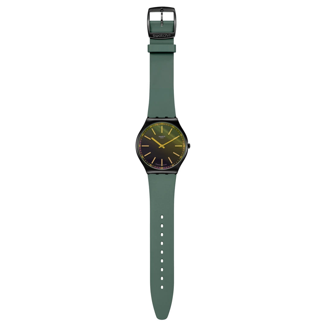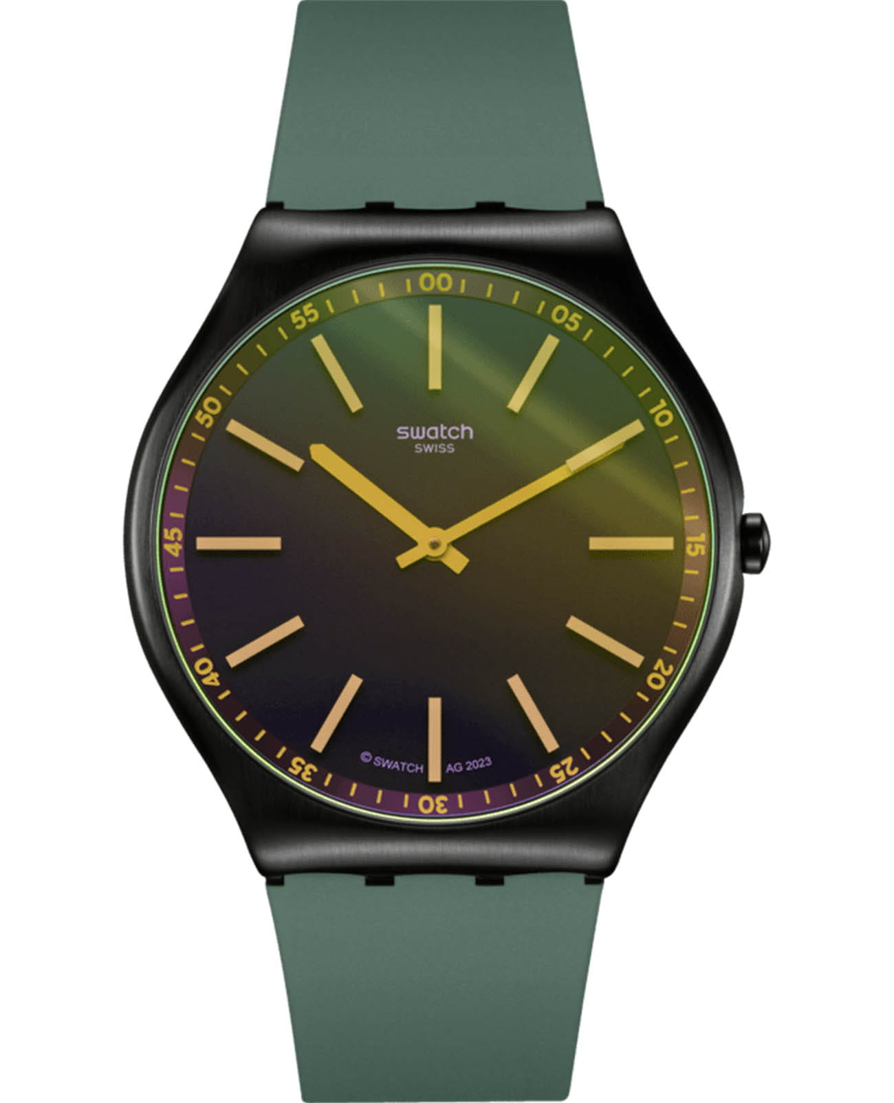 Часы Swatch SS07B112 — это стильный и современный аксессуар для тех, кто ценит лёгкость и комфорт. Часы идеально подойдут как для мужчин, так и для женщин. Эти ультра-тонкие часы из нержавеющей стали с оранжевыми стрелками и печатными индексами на черном циферблате загадочно мерцают под стеклом с эффектом Solar Spectrum. Зеленый ремешок с тренчиком в тон прекрасно сочетается с матированным стальным корпусом и пряжкой с черным с PVDPVDУльтратонкое покрытие наносится в технике вакуумного напыления, сочетает в себе нитрид титана особой прочности со слоем золота или оксида хрома. Несёт в себе декоративную или защитную функцию. покрытием. Водозащита 30 метров делает часы практичными для повседневного использования. Эти часы подойдут для повседневного ношения и станут ярким акцентом в вашем наряде.