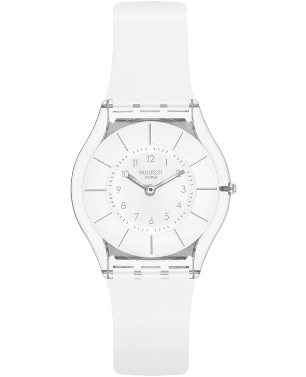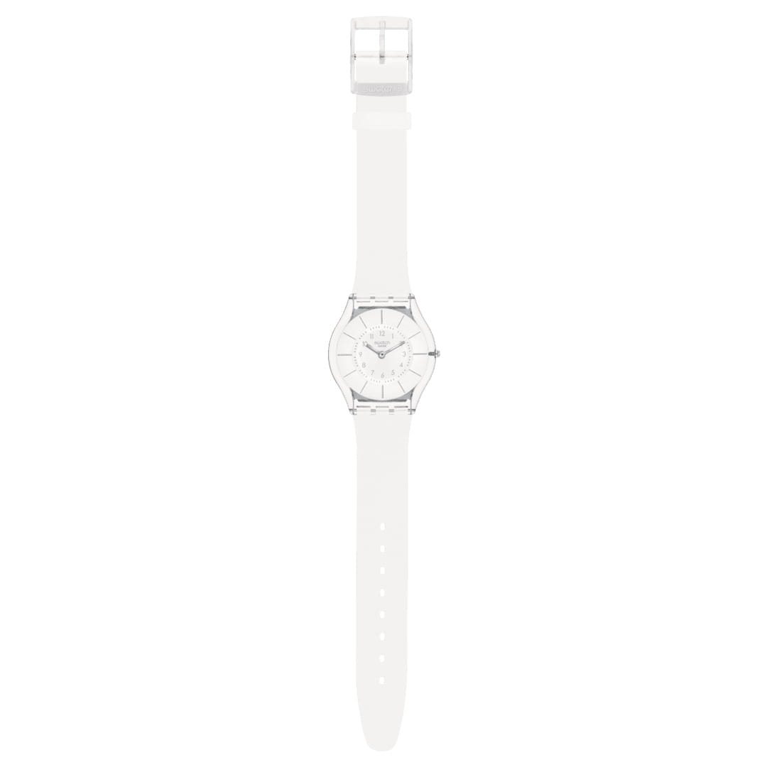 Часы Swatch SS08K102-S14 — это стильный и современный аксессуар для тех, кто ценит лёгкость и комфорт. Часы идеально подойдут как для мужчин, так и для женщин. Ультратонкие часы в прозрачном корпусе из биоматериала с блестящими серебристыми индексами на белом циферблате, помещенном под биостекло. Белый ремешок с тренчиком повторяет расцветку циферблата, а прозрачная застежка схожа с корпусом. Водозащита 30 метров делает часы практичными для повседневного использования. Эти часы подойдут для повседневного ношения и станут ярким акцентом в вашем наряде.
