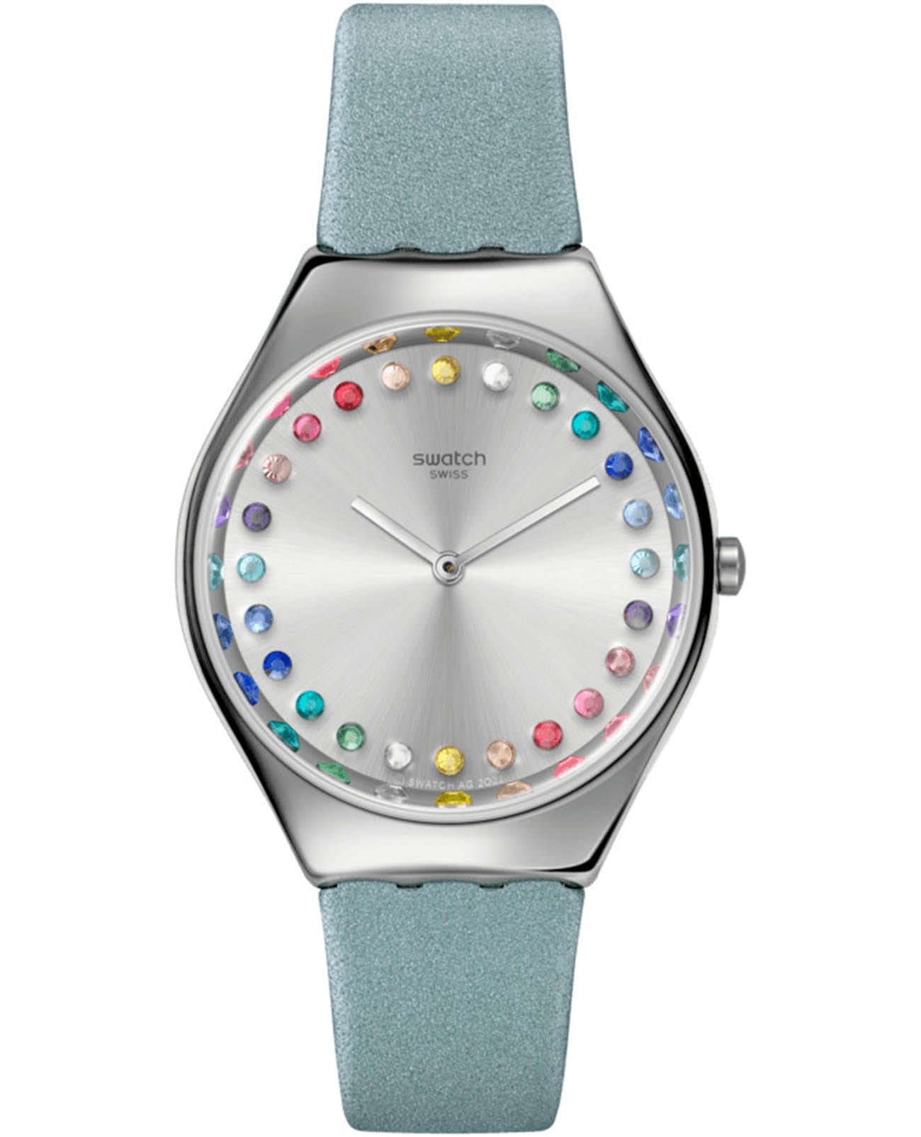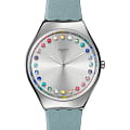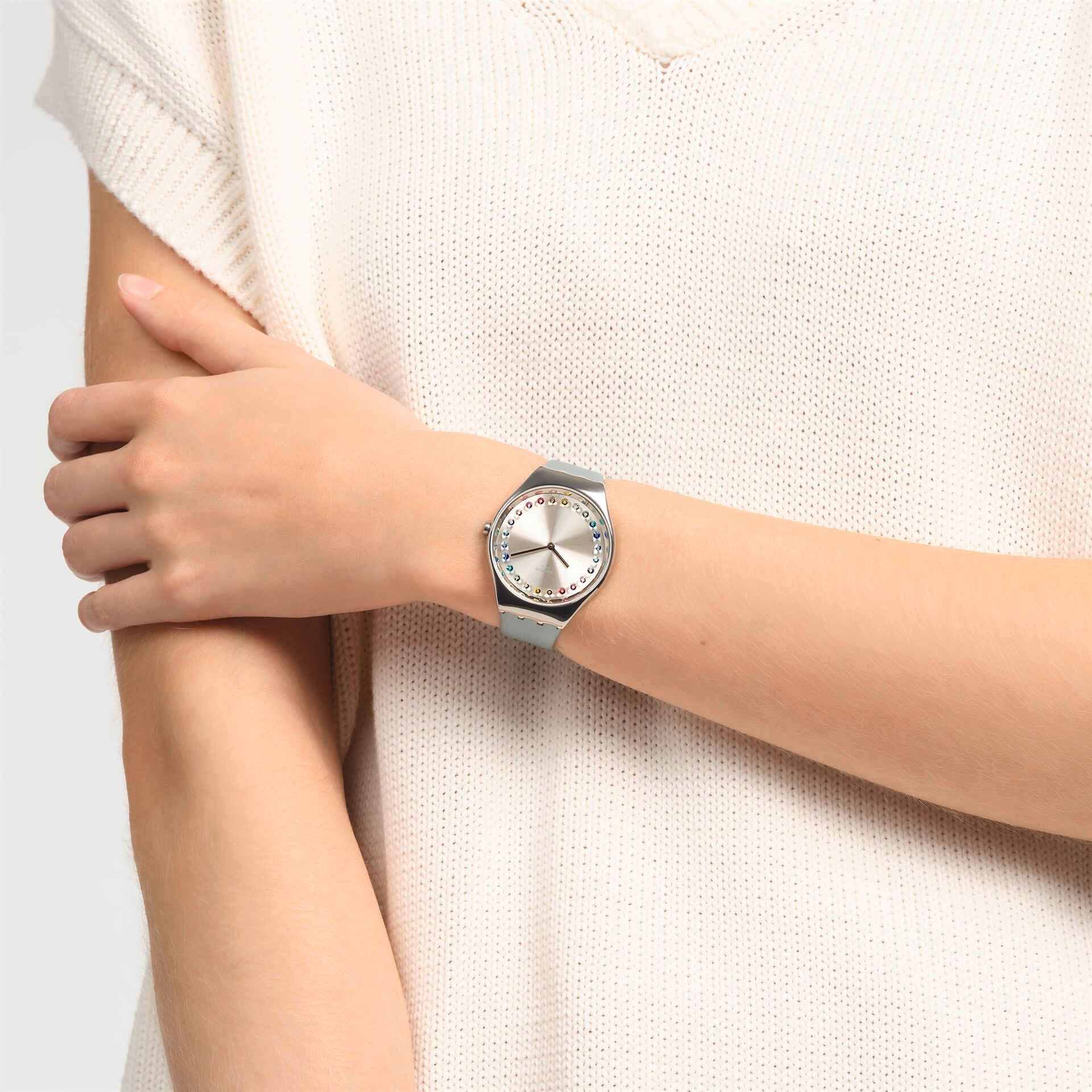 Часы Swatch SYXS144 — это стильный и современный аксессуар для тех, кто ценит лёгкость и комфорт. Часы идеально подойдут как для мужчин, так и для женщин.Эти элегантные часы с полированным корпусом из нержавеющей стали дополнены кожаным ремешком пудрово-голубого цвета. На фоне серебристого циферблата с радиальной полировкой красиво переливаются всеми цветами радуги часовые индексы в виде кристаллов. Водозащита 30 метров делает часы практичными для повседневного использования. Эти часы подойдут для повседневного ношения и станут ярким акцентом в вашем наряде.