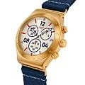 Мужские наручные часы-хронографХронографФункция позволяет измерять отрезки времени с особой точностью: часы, минуты, секунды. Верным признаком хронографа является наличие на циферблате 3 дополнительных окошек-счётчиков. Swatch CAPTAIN'S DREAM YVG419 — это стильный и современный аксессуар для тех, кто ценит лёгкость и комфорт. Корпус выполнен из нержавеющей стали с PVD-покрытиемPVDУльтратонкое покрытие наносится в технике вакуумного напыления, сочетает в себе нитрид титана особой прочности со слоем золота или оксида хрома. Несёт в себе декоративную или защитную функцию. цвета розового золота, диаметром 43 мм и толщиной 12.67 мм, что обеспечивает долговечность и утончённый внешний вид. Циферблат защищён минеральным стекломМинеральное стеклоМинеральное стекло представляет собой искусственно выращенный минерал кварца. Такое стекло отличается особой устойчивостью к повреждениям и царапинам. Уступает по некоторым качествам сапфировому стеклу., устойчивым к повреждениям. Модель оснащена кварцевым механизмом, обеспечивающим высокую точность хода. Шкала тахиметраТахиметрРазмеченная шкала, располагается на ободке или безеле часов. Тахиметр позволяет рассчитать скорость на определённом участке пути, расстояние измеряется в километрах или милях. на безелеБезельВнешний ободок, закрепляющий стекло. В спортивных часах так называется поворотное кольцо с делениями на циферблате, выполняет роль таймера – замеряет отрезки времени на шкале. Неподвижный безель – элемент декора. Однонаправленно вращающийся безель на дайверских часах позволяет фиксировать моменты погружения и выныривания на поверхность.. Стрелки и метки с люминесцентным покрытиемЛюминесцентное покрытиеПозволяет считывать показания времени в темноте. Производители наносят на стрелки, часовые индексы, безель или поверхность циферблата светонакопительный состав, дающий холодное свечение.. Тканевый ремешок на стандартной застёжке гармонично дополняет корпус и обеспечивает комфортное ношение. Водозащита 30 метров делает часы практичными для повседневного использования. Эти часы подойдут для повседневного ношения и станут ярким акцентом в вашем наряде.