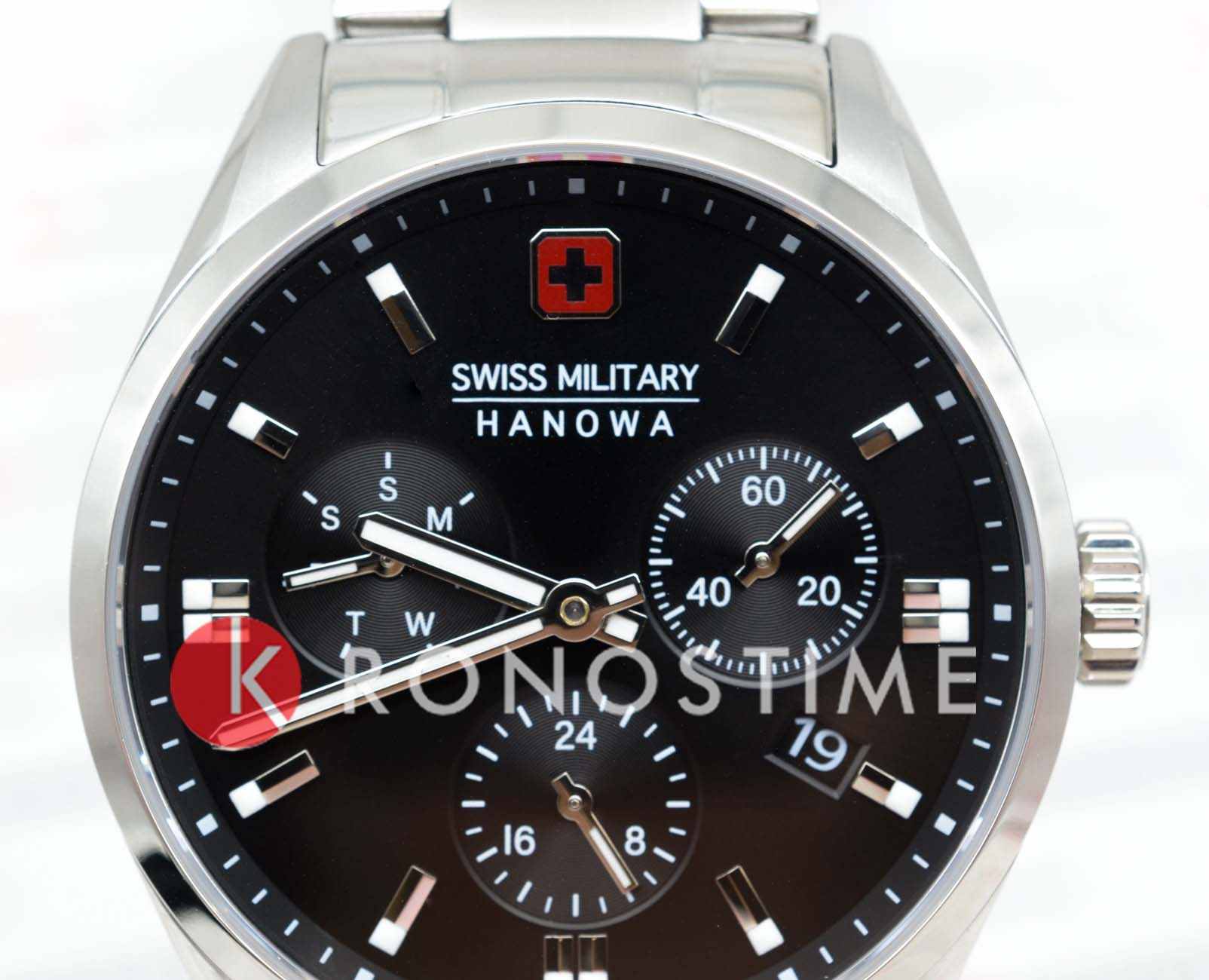Мужские швейцарские часы Swiss Military Hanowa SMWGK0005601 – это элегантные часы, сочетающие в себе классический дизайн и современную функциональность. Корпус из нержавеющей стали диаметром 43 мм сбалансирован и элегантен. Сапфировое стеклоСапфировое стеклоПрочный и надёжный материал из кристалла сапфира синтетического происхождения, характеризующийся особой твёрдостью и устойчивостью к царапинам и повреждениям. с антибликовым покрытием защищает циферблат от царапин и обеспечивает отличную читаемость при любом освещении. Браслет с раскладной застёжкойРаскладная застёжкаТакой тип застёжки используется только на браслетах из металла. Она никогда не раскрывается полностью, происходит разделение на 2 и более частей. Раскладывающая застёжка снизит вероятность потери часов к минимуму. идеально дополняют дизайн часов, обеспечивая комфортное ношение. Люминесцентное покрытиеЛюминесцентное покрытиеПозволяет считывать показания времени в темноте. Производители наносят на стрелки, часовые индексы, безель или поверхность циферблата светонакопительный состав, дающий холодное свечение. стрелок и меток позволит вам следить за временем даже в полной темноте. Индикатор даты в положении 4 часа, индикатор дня недели; 24-часовой формат. Водонепроницаемость до 100 метров хорошо подходят для повседневного ношения и занятий водными видами спорта.