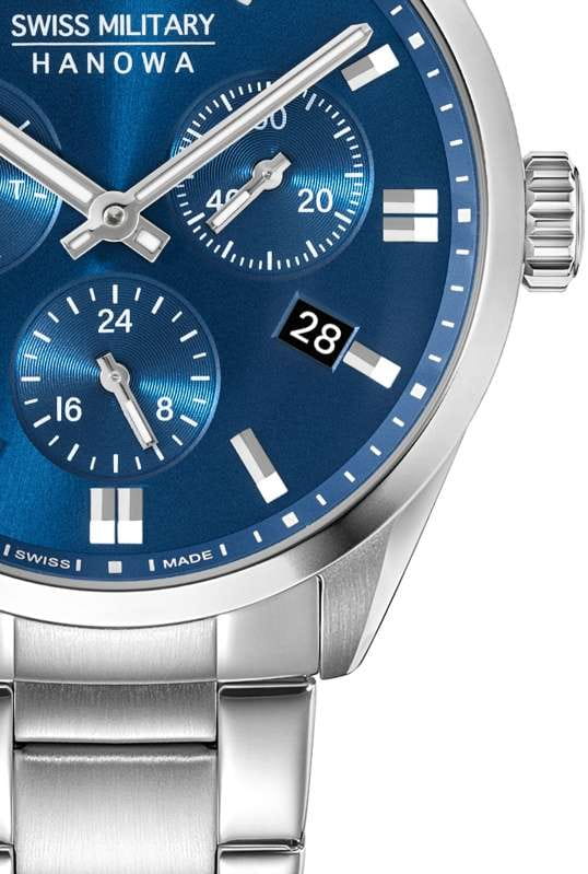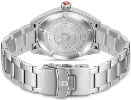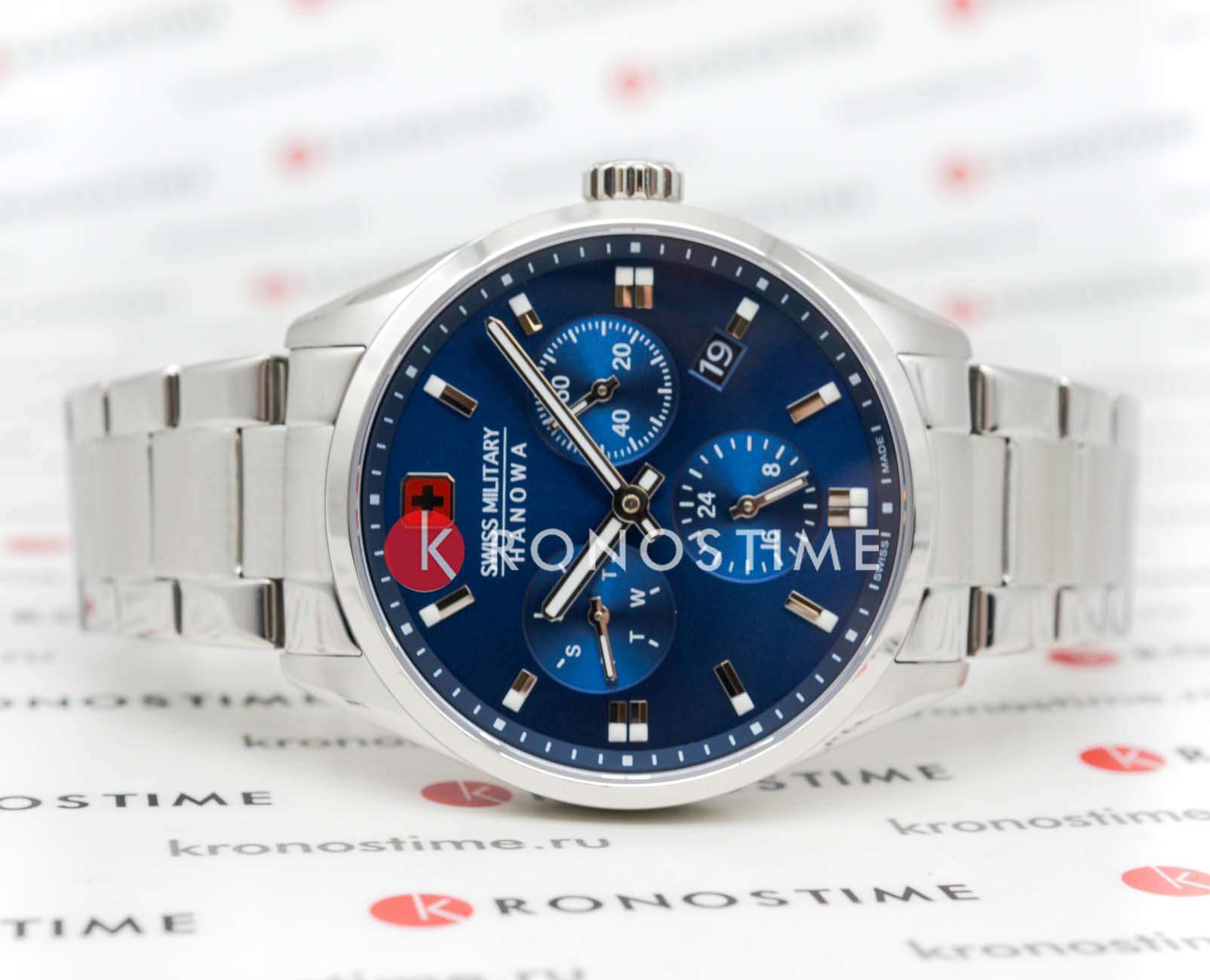 Мужские швейцарские часы Swiss Military Hanowa SMWGK0005602 – это элегантные часы, сочетающие в себе классический дизайн и современную функциональность. Корпус из нержавеющей стали диаметром 43 мм сбалансирован и элегантен. Сапфировое стеклоСапфировое стеклоПрочный и надёжный материал из кристалла сапфира синтетического происхождения, характеризующийся особой твёрдостью и устойчивостью к царапинам и повреждениям. с антибликовым покрытием защищает циферблат от царапин и обеспечивает отличную читаемость при любом освещении. Браслет с раскладной застёжкойРаскладная застёжкаТакой тип застёжки используется только на браслетах из металла. Она никогда не раскрывается полностью, происходит разделение на 2 и более частей. Раскладывающая застёжка снизит вероятность потери часов к минимуму. идеально дополняют дизайн часов, обеспечивая комфортное ношение. Люминесцентное покрытиеЛюминесцентное покрытиеПозволяет считывать показания времени в темноте. Производители наносят на стрелки, часовые индексы, безель или поверхность циферблата светонакопительный состав, дающий холодное свечение. стрелок и меток позволит вам следить за временем даже в полной темноте. Индикатор даты в положении 4 часа, индикатор дня недели; 24-часовой формат. Водонепроницаемость до 100 метров хорошо подходят для повседневного ношения и занятий водными видами спорта.