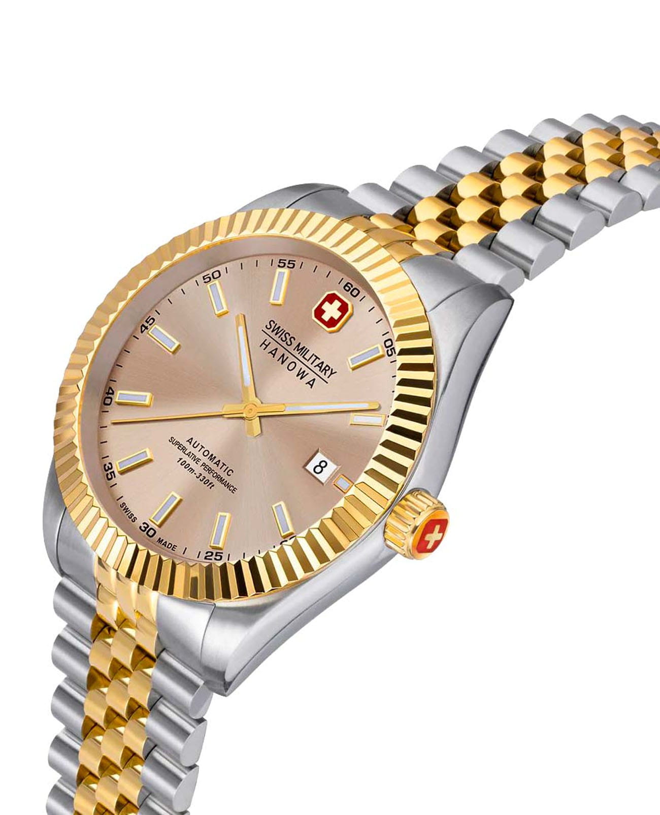 Мужские механические швейцарские часы с автоподзаводом Swiss Military Hanowa Diligenter SMWGL0002160. Сапфировое стеклоСапфировое стеклоПрочный и надёжный материал из кристалла сапфира синтетического происхождения, характеризующийся особой твёрдостью и устойчивостью к царапинам и повреждениям. устойчивое к появлению царапин, обладающее высокой прозрачностью. Корпус из нержавеющей стали. БезельБезельВнешний ободок, закрепляющий стекло. В спортивных часах так называется поворотное кольцо с делениями на циферблате, выполняет роль таймера – замеряет отрезки времени на шкале. Неподвижный безель – элемент декора. Однонаправленно вращающийся безель на дайверских часах позволяет фиксировать моменты погружения и выныривания на поверхность. из нержавеющей стали с IP-покрытиемIP-покрытиеМетод ионного напыления. Демонстрирует повышенную устойчивость к истиранию, окислению и химическим веществам. Под воздействием высокого давления и температуры около 1500°C молекулы металла надёжно соединяются с частицами корпуса часов.. Стрелки и метки с люминесцентным покрытиемЛюминесцентное покрытиеПозволяет считывать показания времени в темноте. Производители наносят на стрелки, часовые индексы, безель или поверхность циферблата светонакопительный состав, дающий холодное свечение.. Циферблат выполнен по технологии Sunray (солнечные лучи). Окошко даты находится в положении 3 часов. Класс водозащиты: 100 метров, позволит плавать, нырять и заниматься другими водными видами спорта. Стальной браслет с частичным IP-покрытиемIP-покрытиеМетод ионного напыления. Демонстрирует повышенную устойчивость к истиранию, окислению и химическим веществам. Под воздействием высокого давления и температуры около 1500°C молекулы металла надёжно соединяются с частицами корпуса часов. на раскладной застёжкеРаскладная застёжкаТакой тип застёжки используется только на браслетах из металла. Она никогда не раскрывается полностью, происходит разделение на 2 и более частей. Раскладывающая застёжка снизит вероятность потери часов к минимуму..