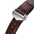 Белый циферблат и ремешок из коричневой кожи аллигатора придают этим автоматическим часам с циферблатом, оснащенным окошком даты и дня недели, по-настоящему классический вид. Стрелки и часовые метки с покрытием из розового золота наделяют изделие роскошным блеском. TAG Heuer Carrera WAR201D.FC6291, механический механизм (автоматический калибр) с высокой точностью. Сапфировое стекло устойчивое к появлению царапин, обладающее высокой прозрачностью. Класс водозащиты: 100 метров, позволит плавать, нырять и заниматься другими водными видами спорта. Корпус часов изготовлен из стали, цвета.